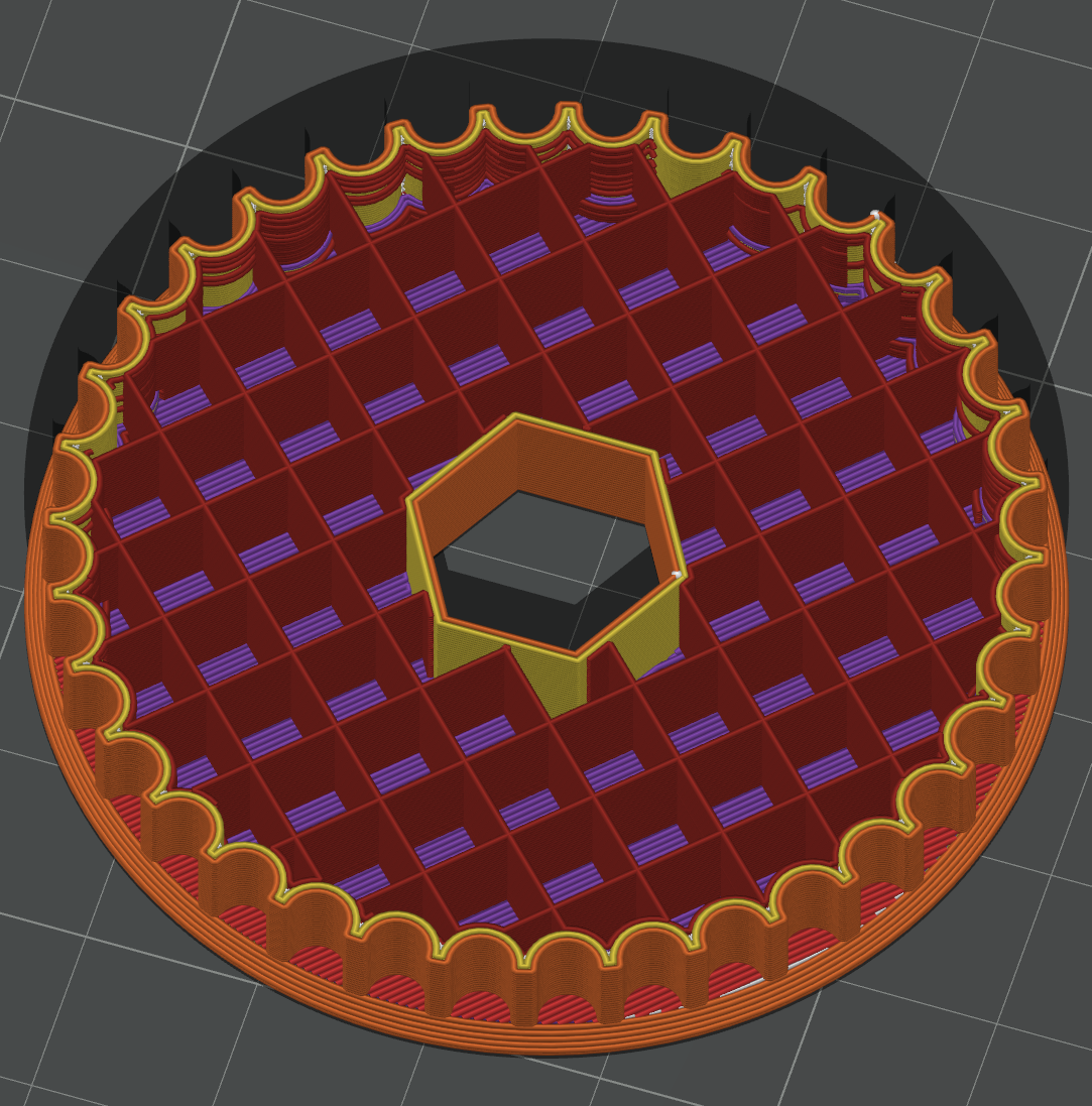 Infill: Güç aktarım parçaları daha fazla duvar ve daha yüksek infill yüzdesi (parçanın içindeki yoğunluk) ile yazdırılması gerekebilir. Kullanım durumuna bağlı olarak %100 infill ile yazdırmak bile gerekebilir. Daha düşük infill kullanmak baskı süresini azaltır ve ağırlığı azaltır, ancak parçanın kırılma riskini artırabilir.