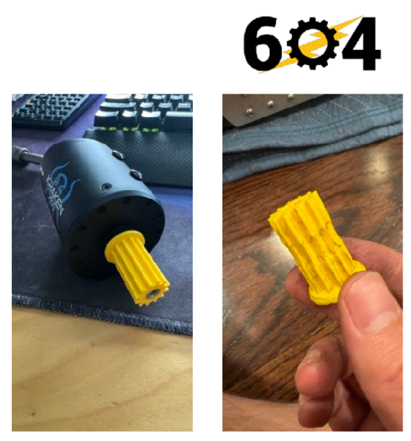 Dişliler kullanım durumlarına bağlı olarak 3D yazdırılabilir. Yüksek tork gereksinimleri olan genel uygulamalar için 3D yazdırılmış dişliler uygun değildir. Ancak pençeler veya ikincil mekanizmalar gibi şeyler 3D yazıcının ağırlık tasarrufu ve esnekliğinden faydalanabilir. Aşağıdaki örnekte, 3005 Robochargers, 2023'te uç etkileşimlerinde 3D yazdırılmış dişlileri harika kullandılar.