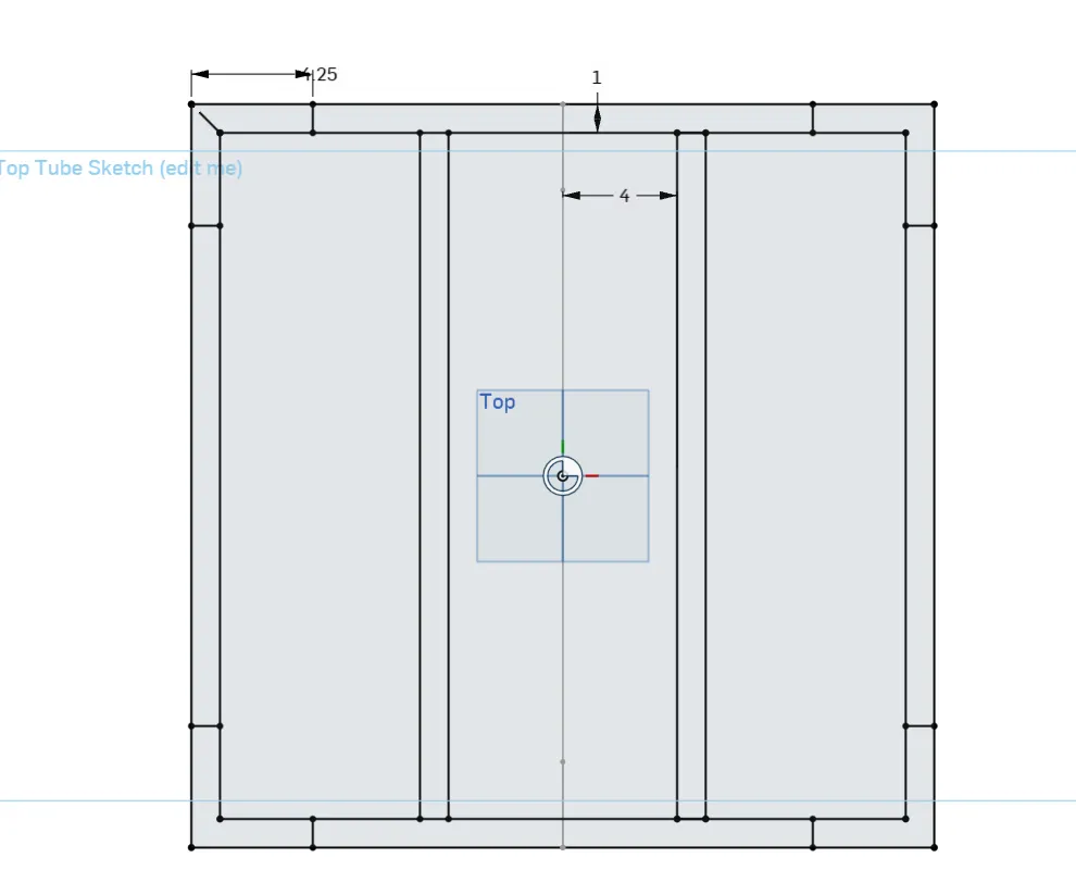 Sketch yaparken, kutu borularını temsil etmek için 2D'de dikdörtgenler kullanırız ve her şeyi yerine kilitlemek için dimension'ları ve constraint'leri kullanırız.