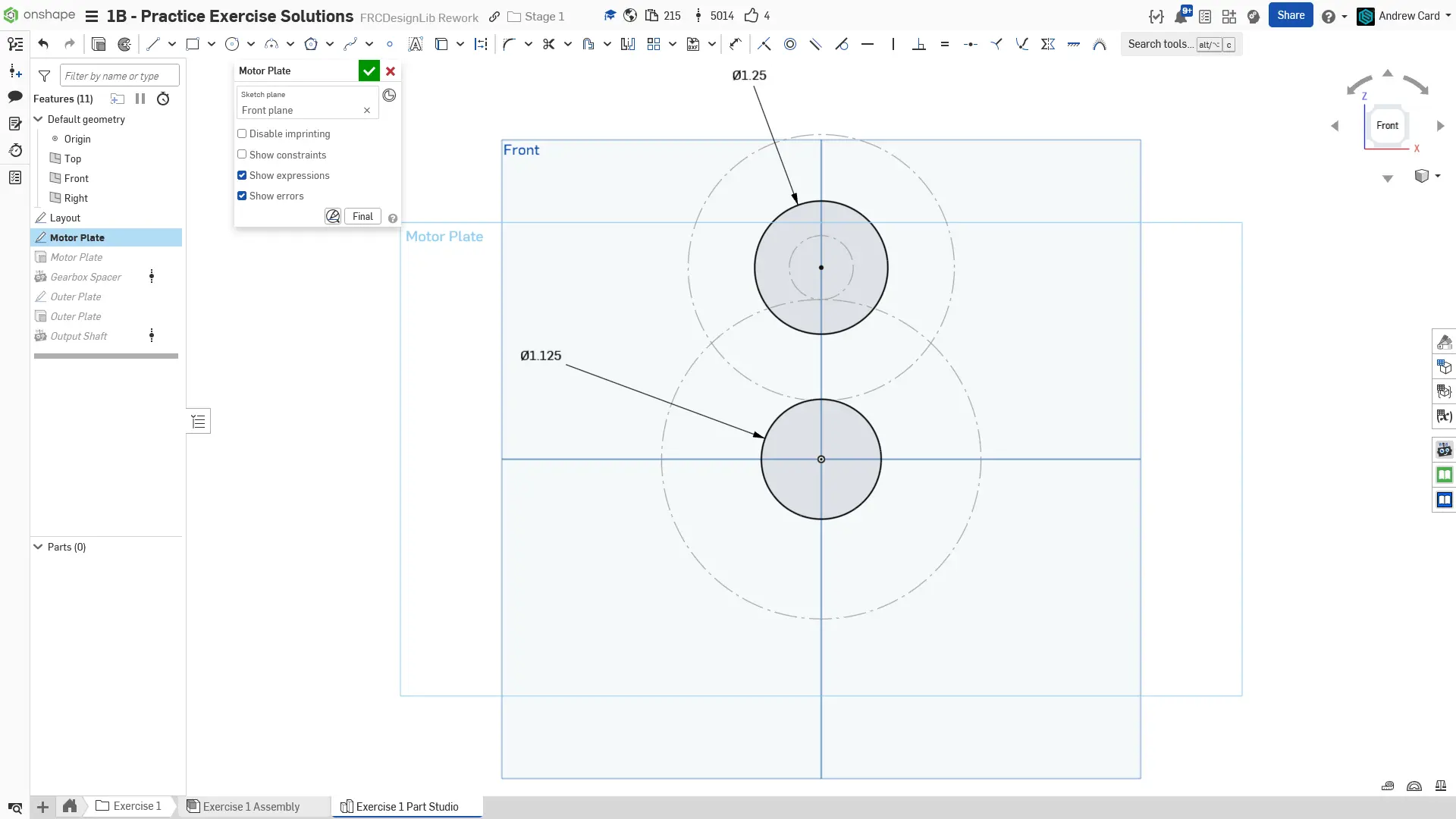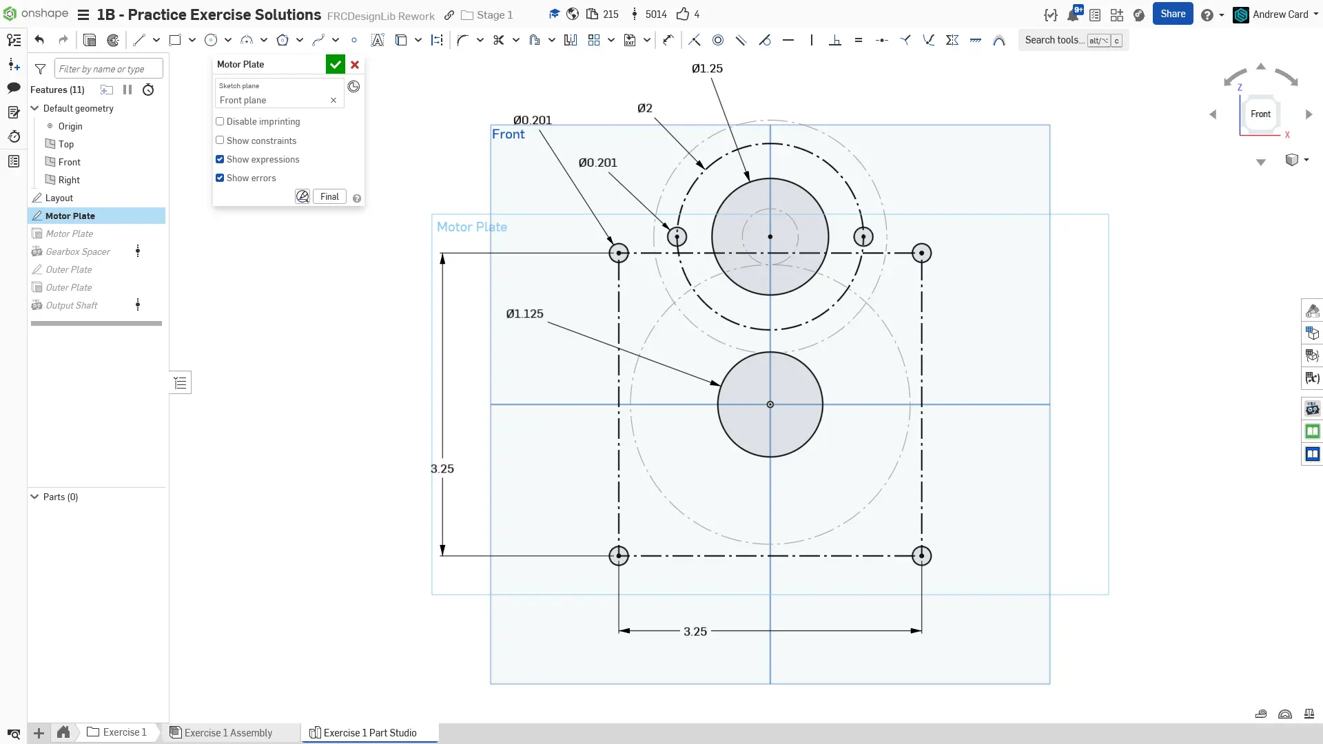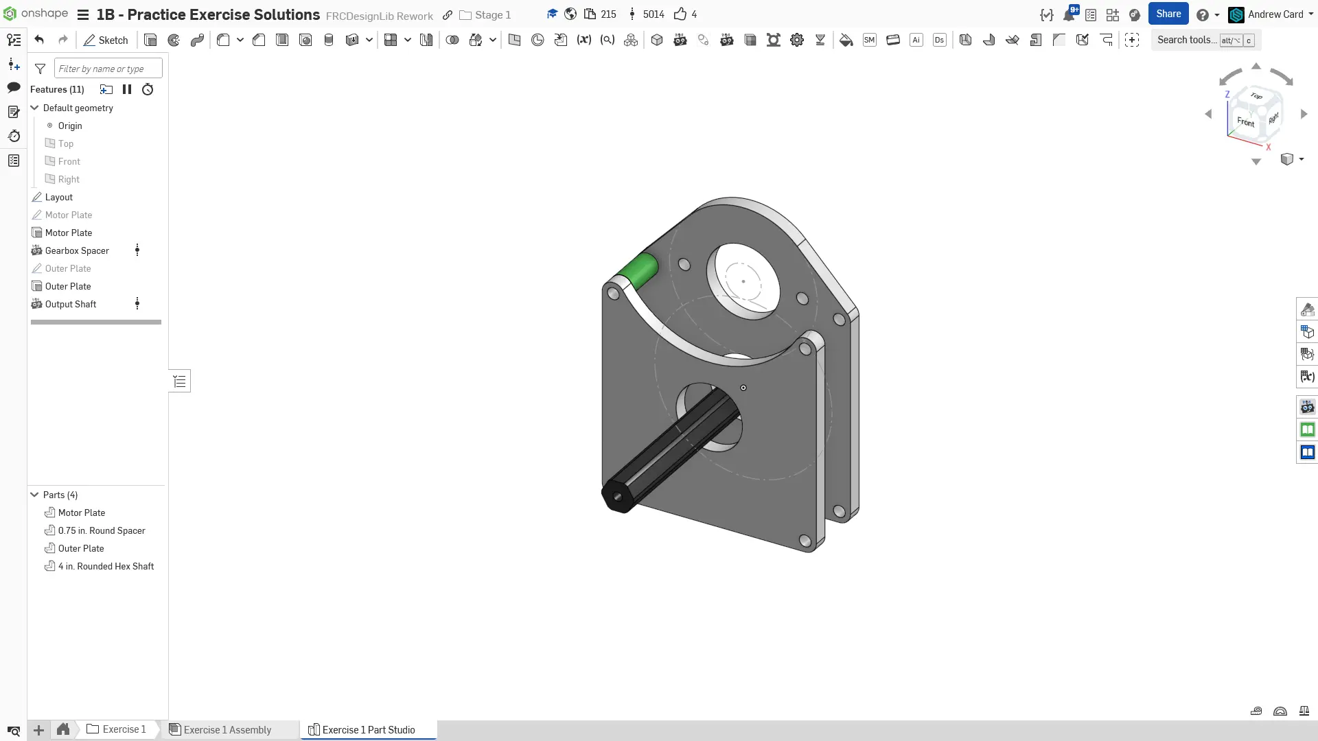 Kopyaladığınız belgede "Exercise #1 Part Studio" sekmesine gidin ve part studioyu tamamlamak için slaytlardaki talimatları izleyin.