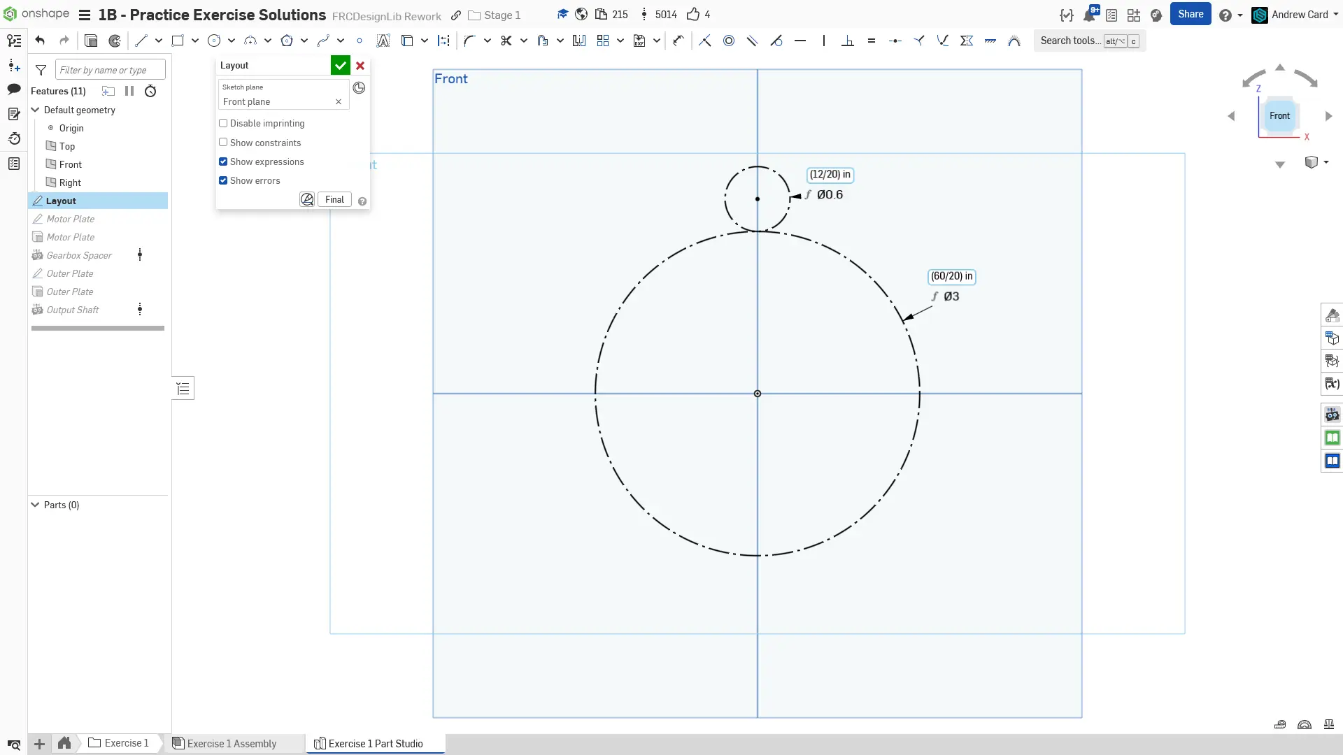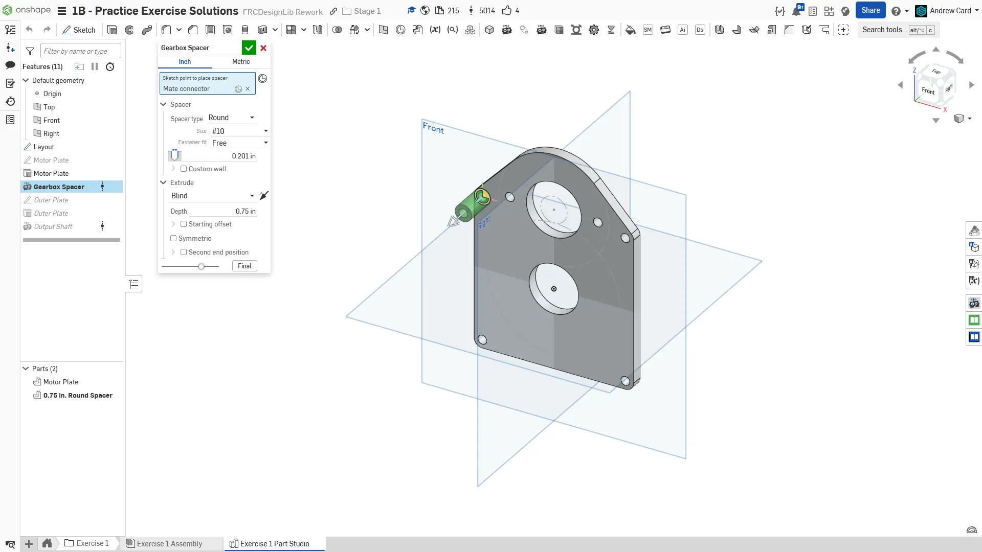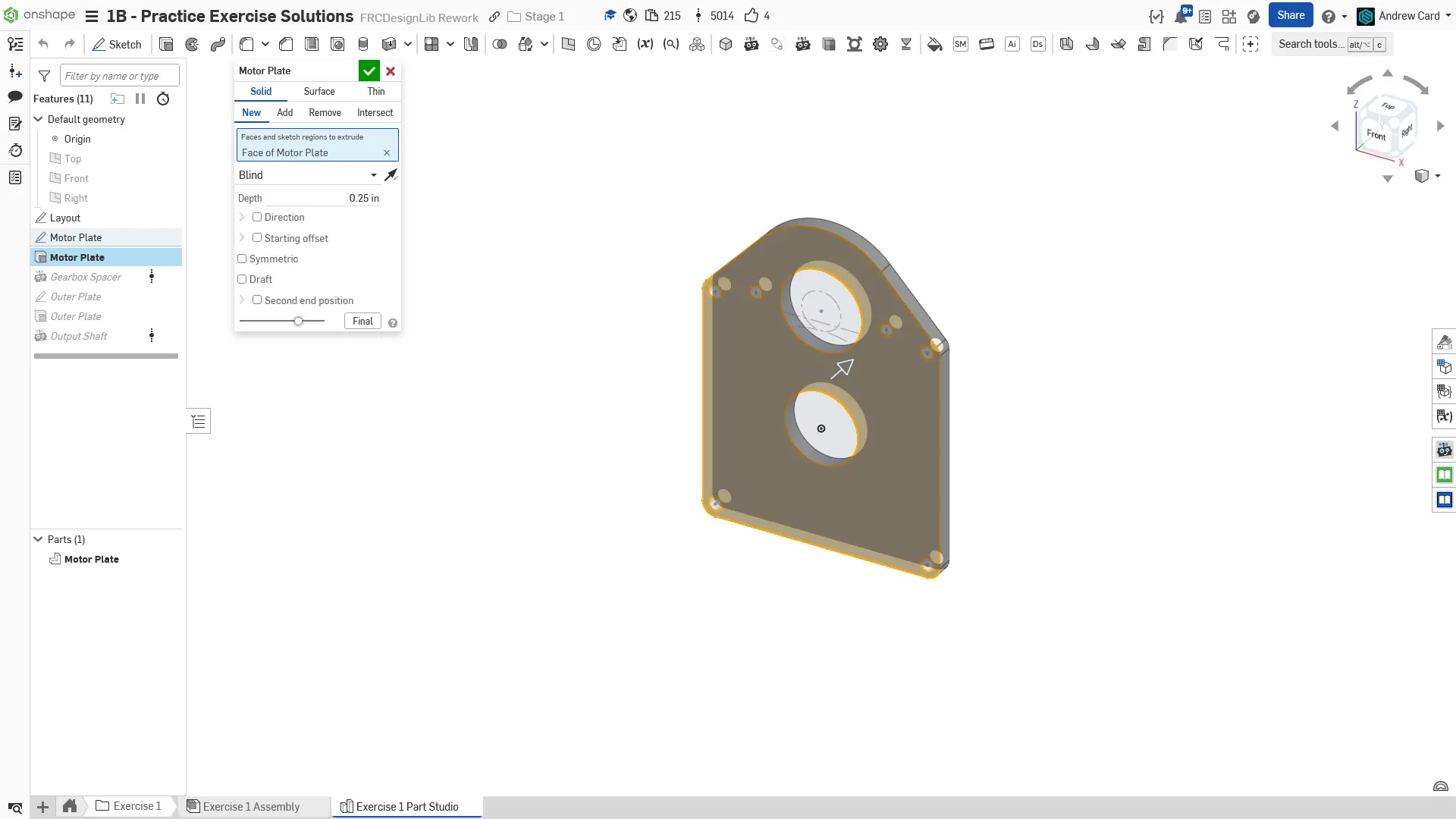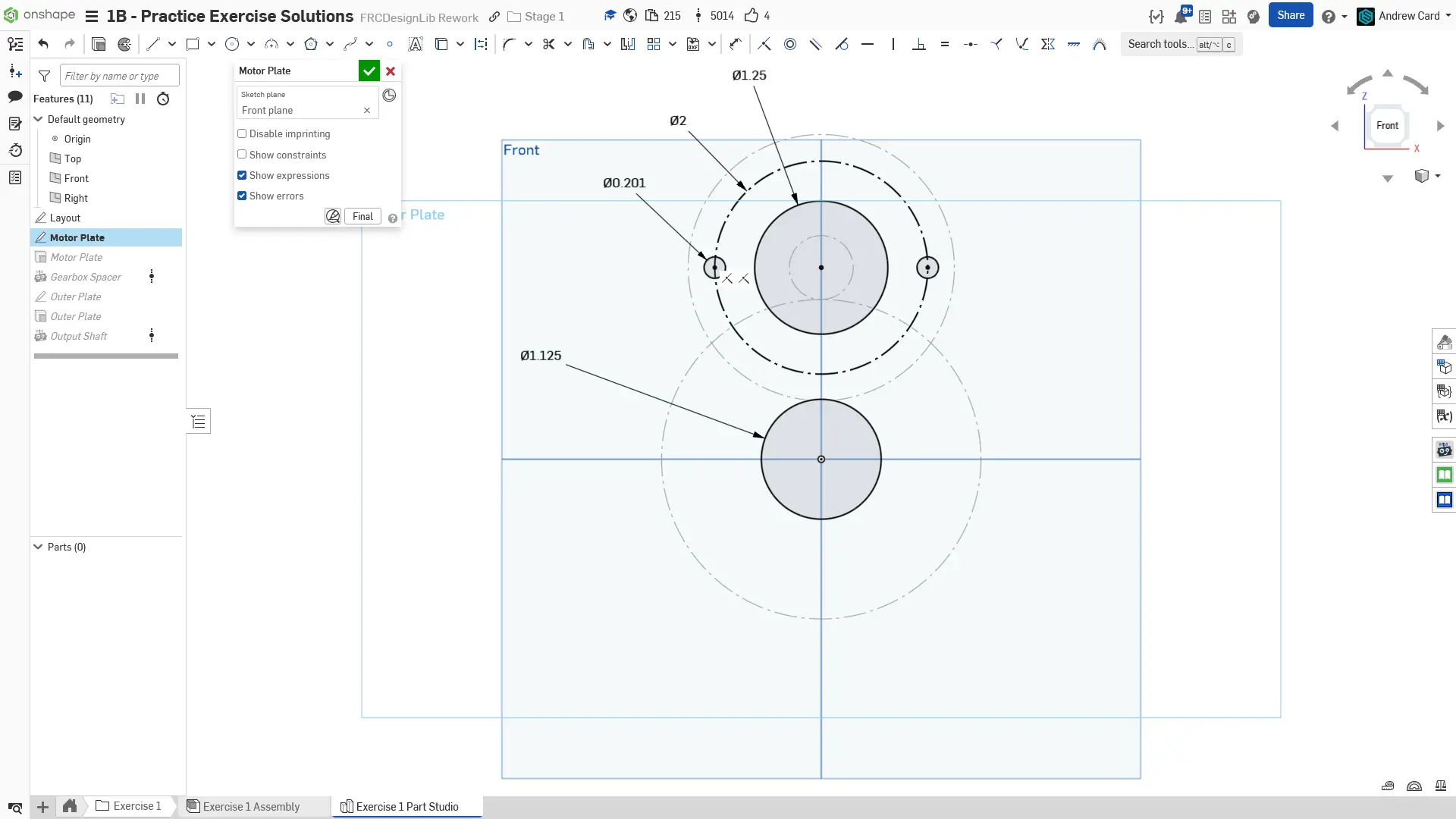 Kopyaladığınız belgede "Exercise #1 Part Studio" sekmesine gidin ve part studioyu tamamlamak için slaytlardaki talimatları izleyin.