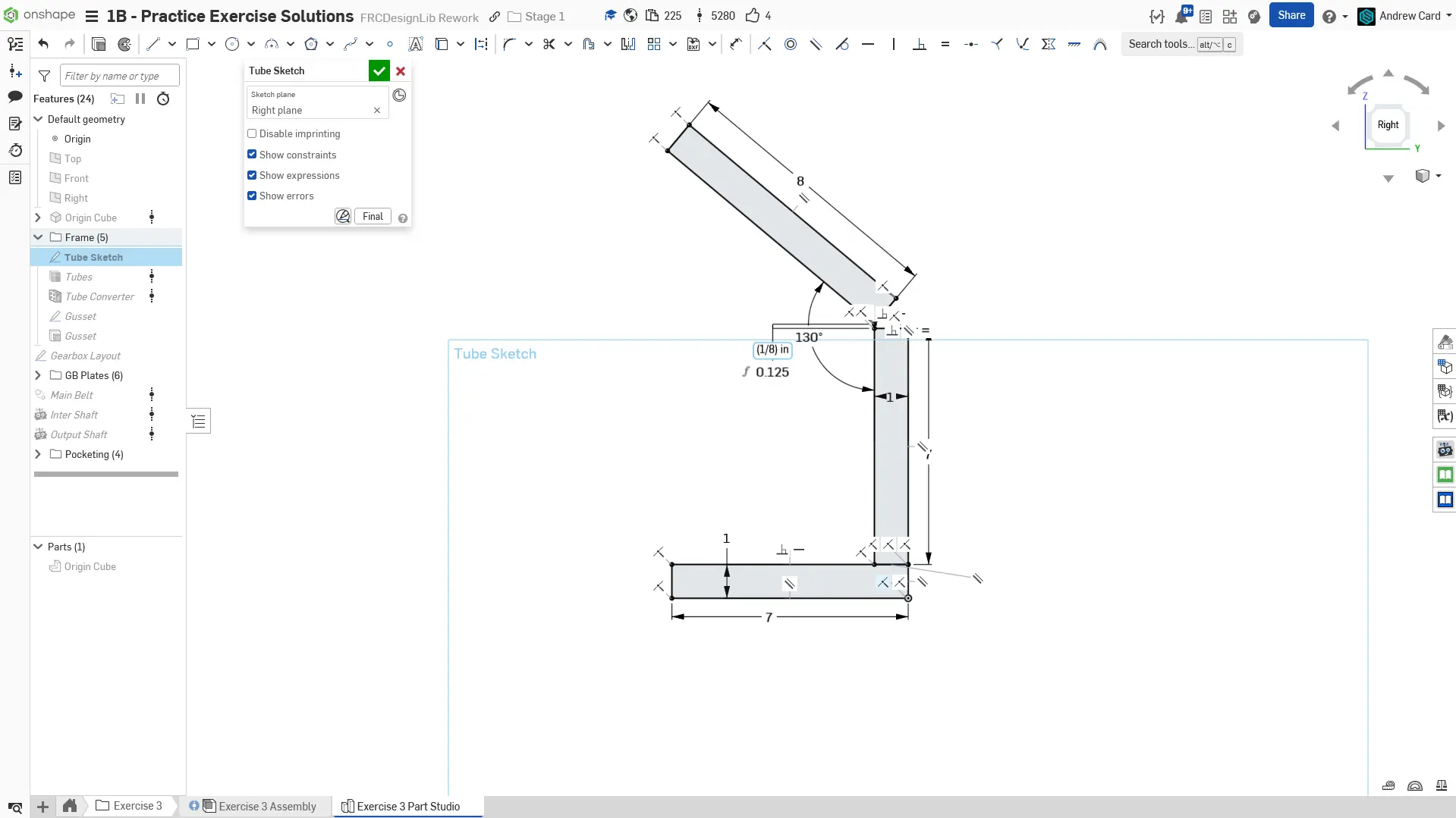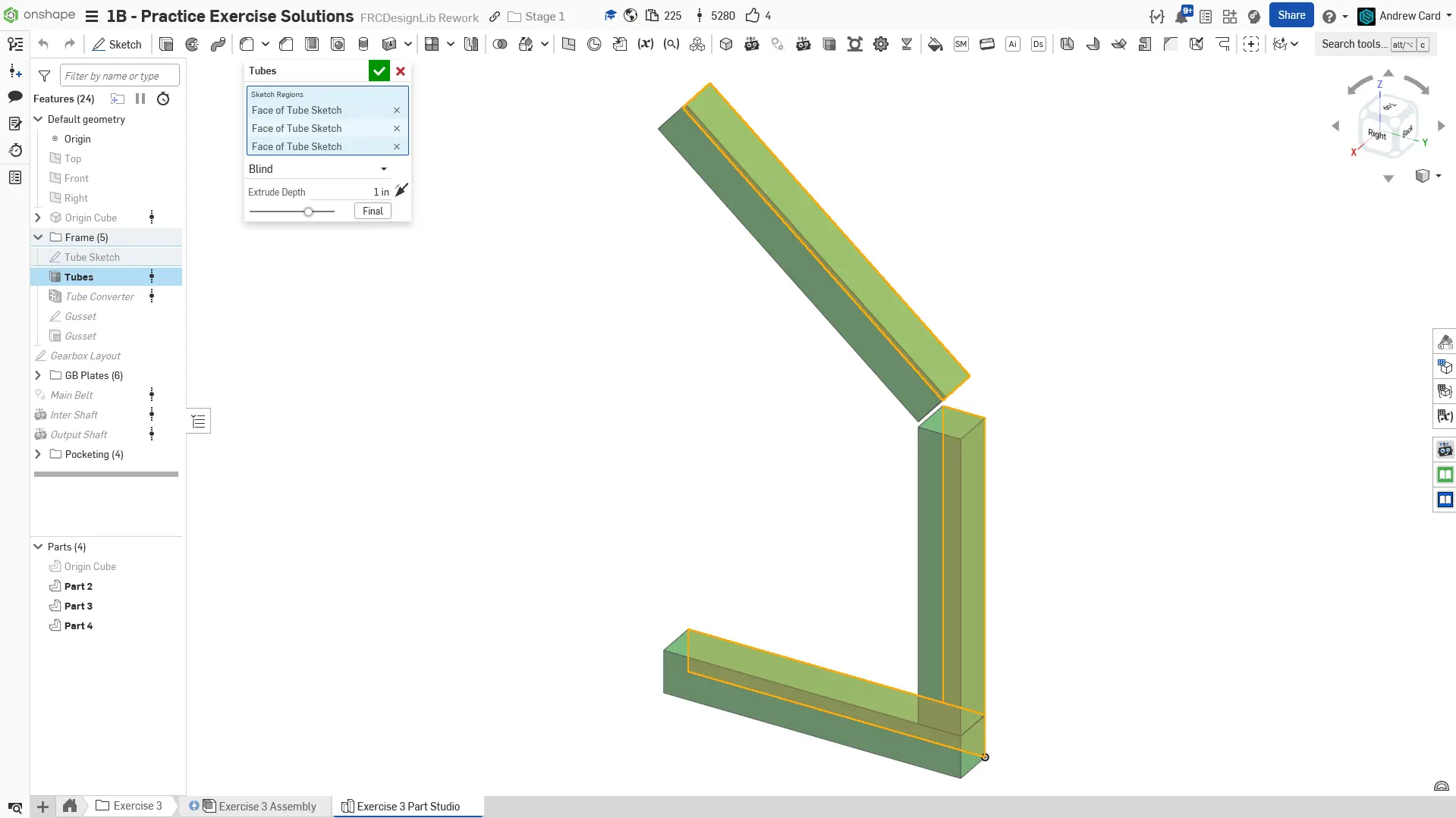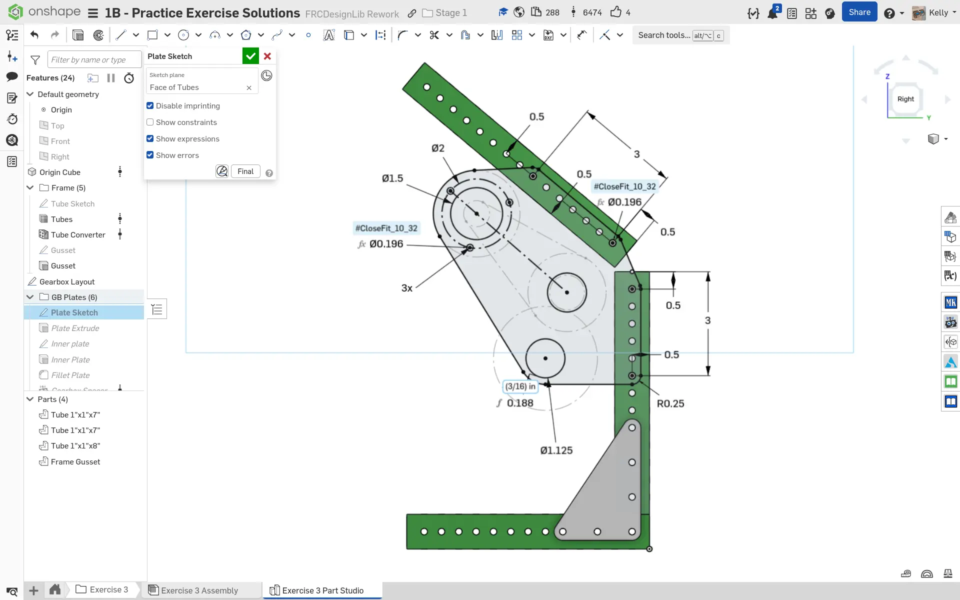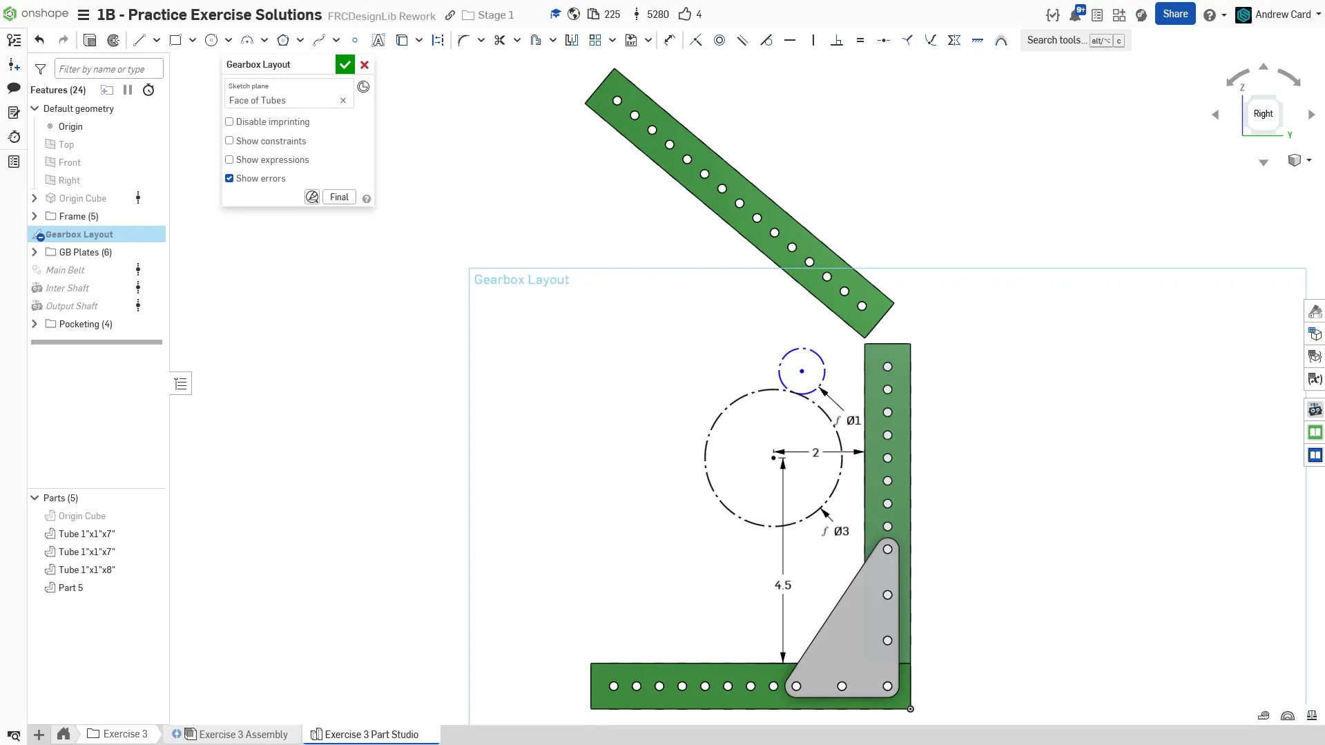 Kopyaladığınız belgede "Exercise #3 Part Studio" sekmesine gidin ve bu egzersiz için part studioyu tamamlamak üzere slaytlardaki talimatları izleyin.