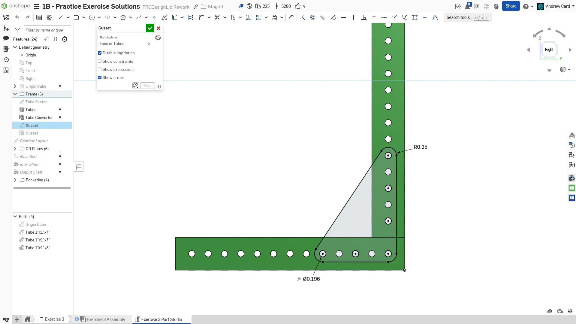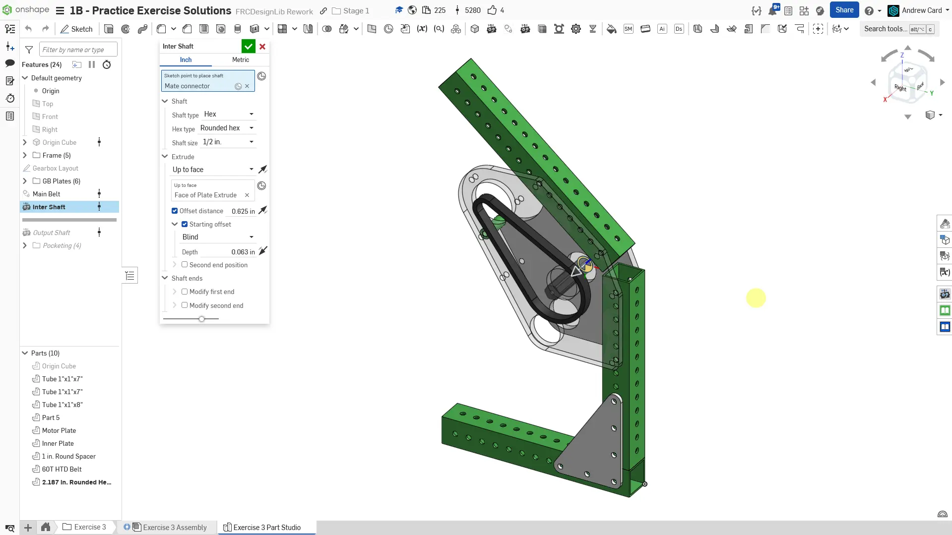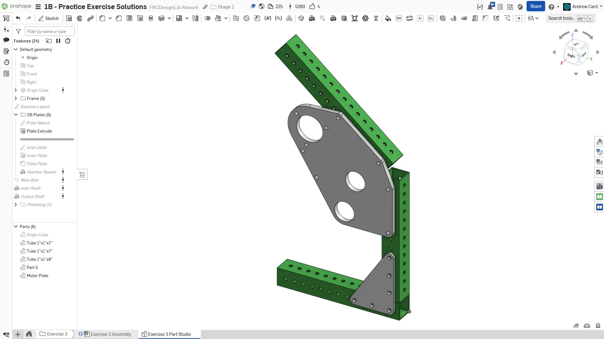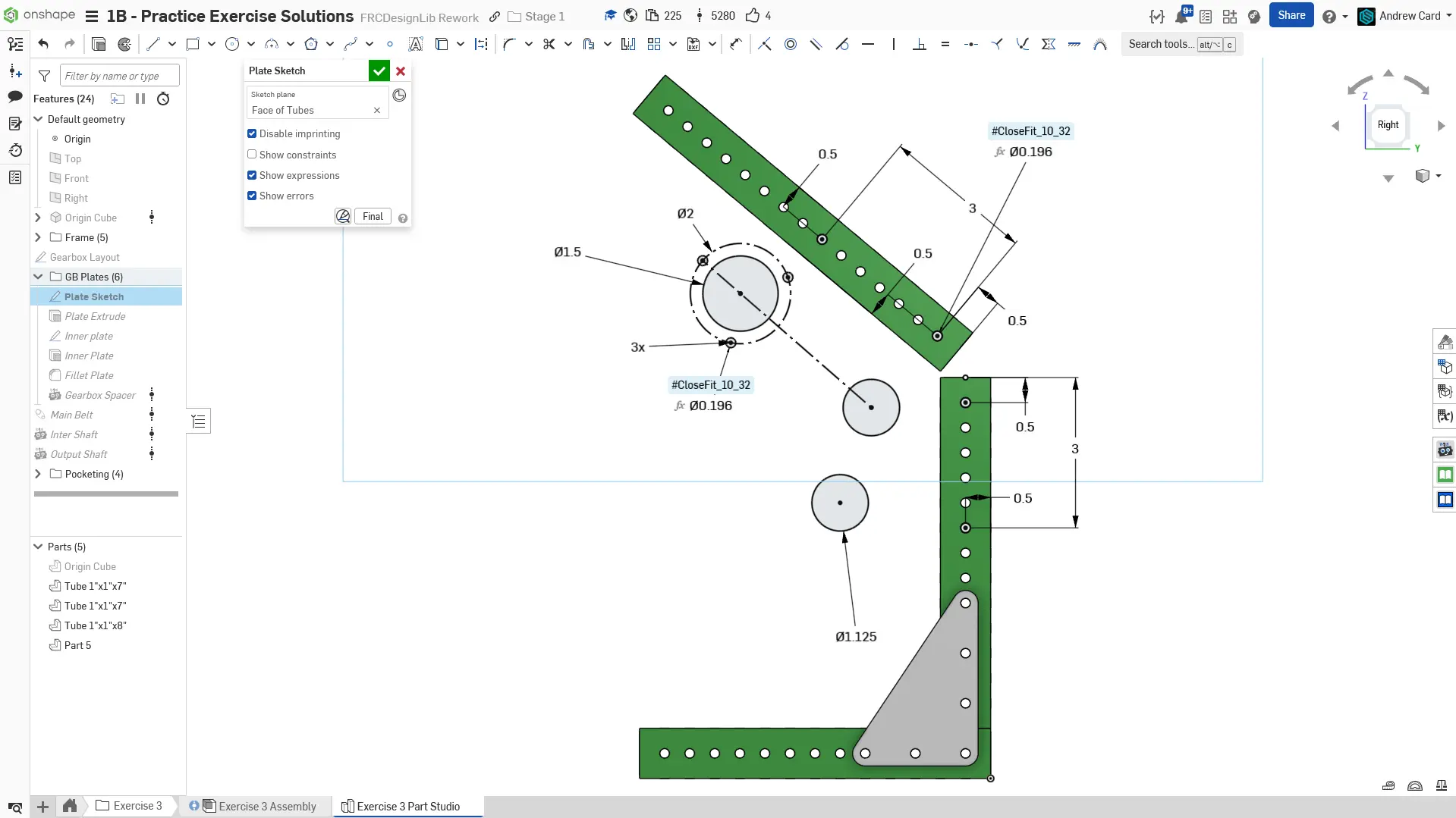 Kopyaladığınız belgede "Exercise #3 Part Studio" sekmesine gidin ve bu egzersiz için part studioyu tamamlamak üzere slaytlardaki talimatları izleyin.