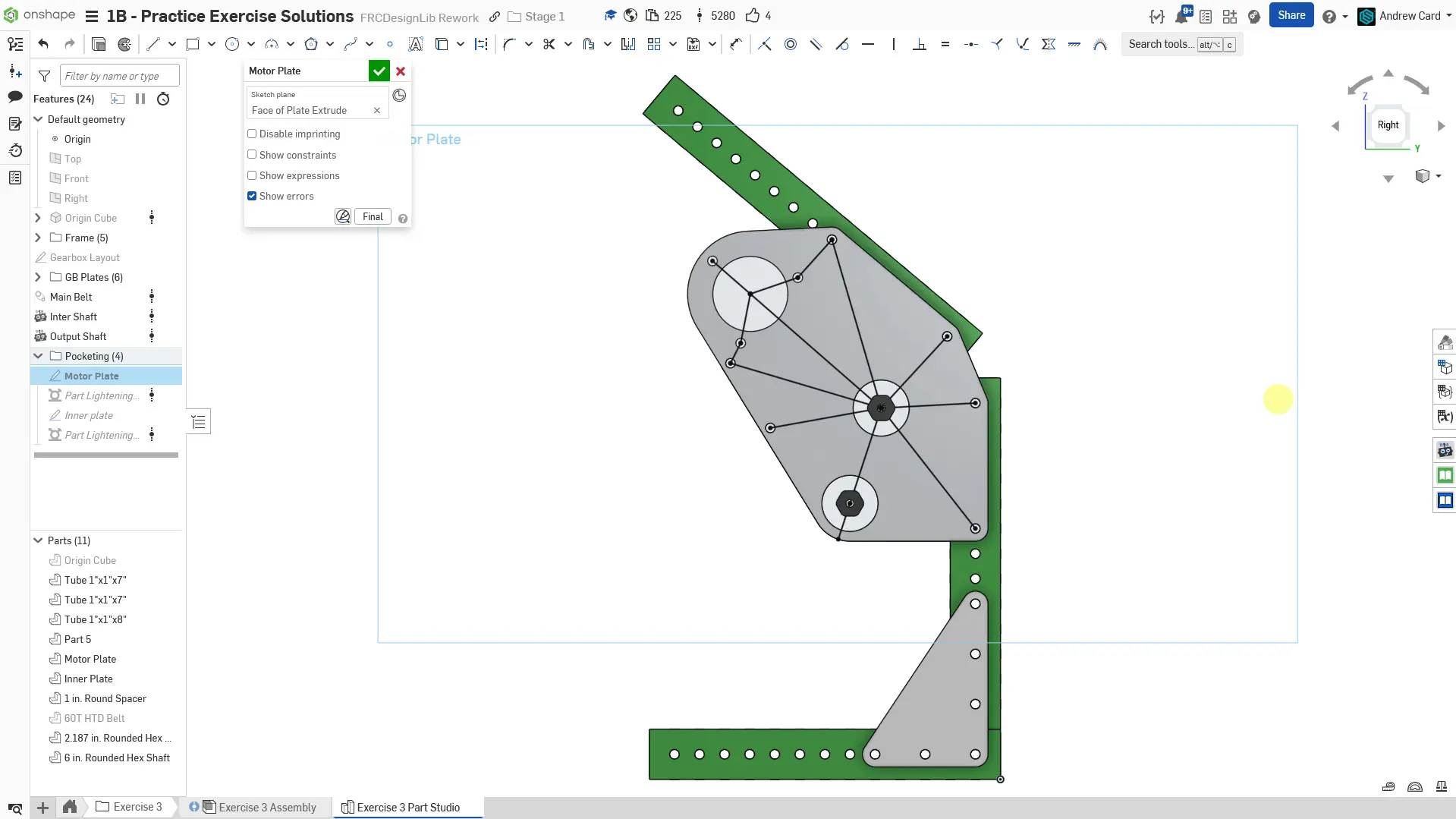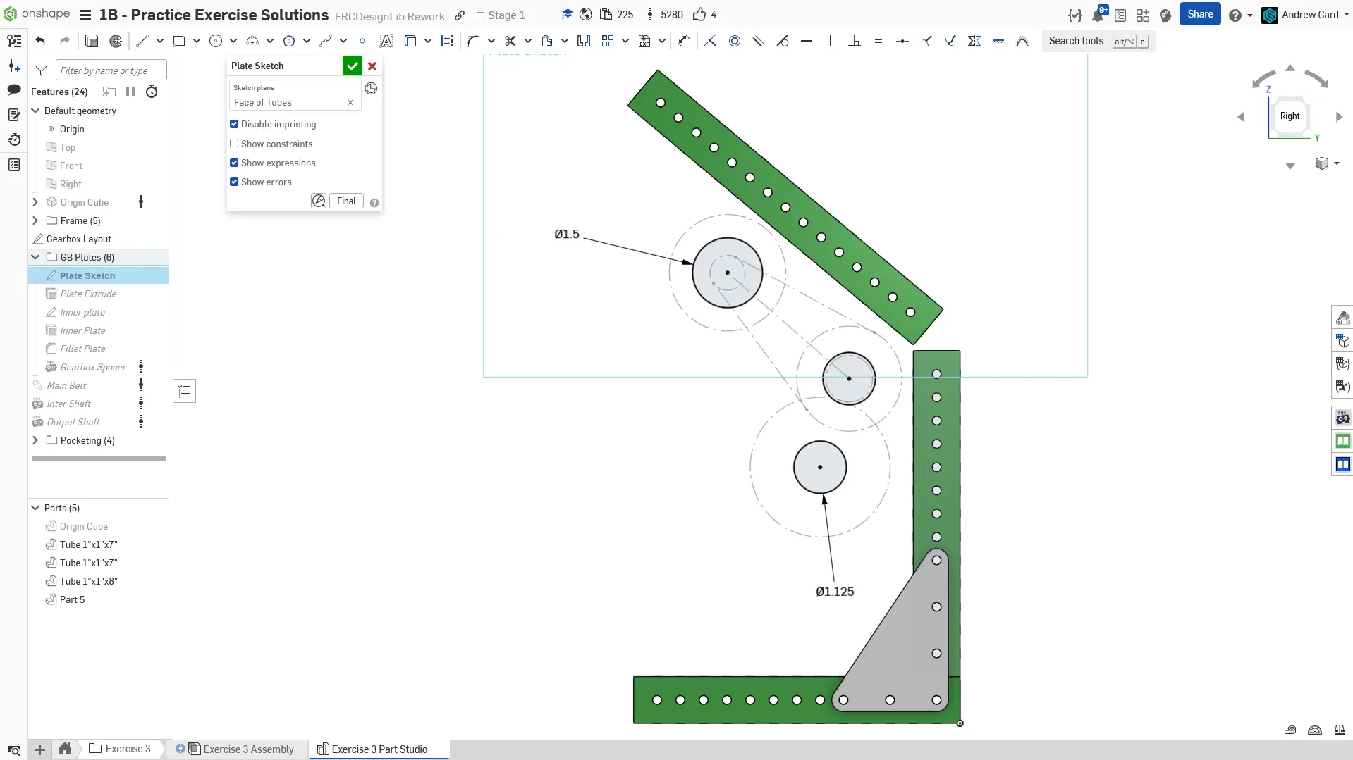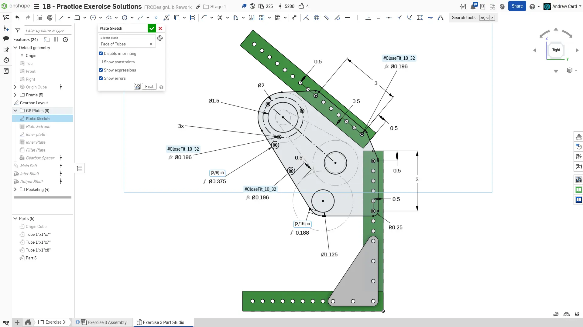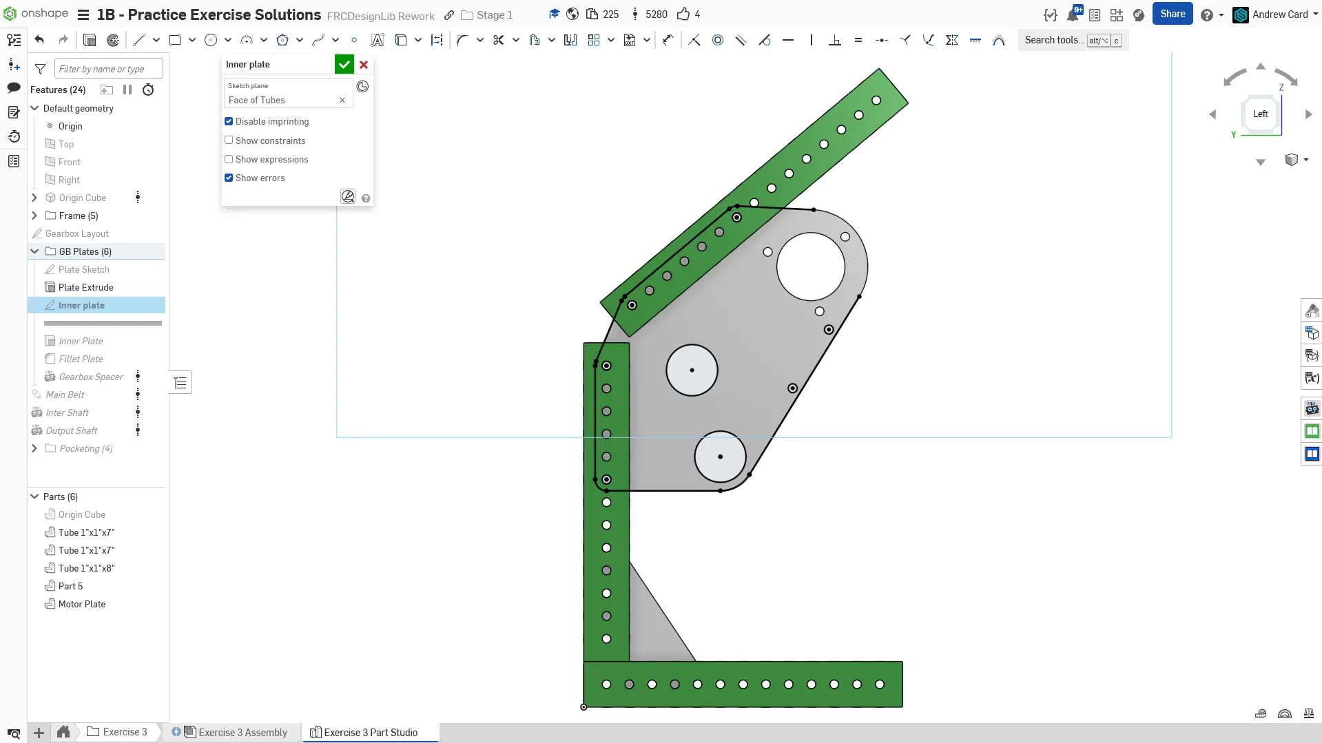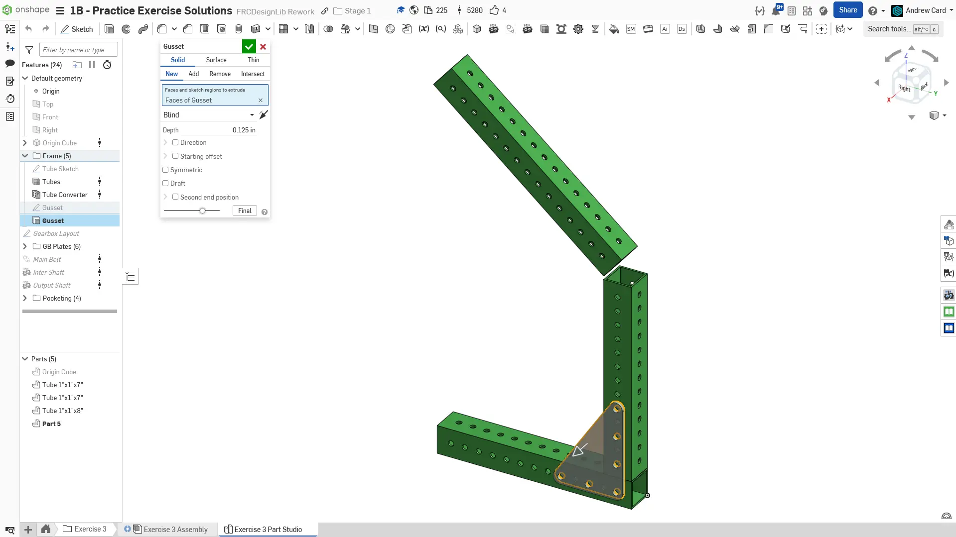 Kopyaladığınız belgede "Exercise #3 Part Studio" sekmesine gidin ve bu egzersiz için part studioyu tamamlamak üzere slaytlardaki talimatları izleyin.