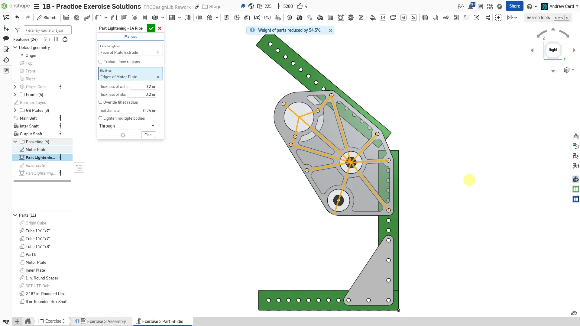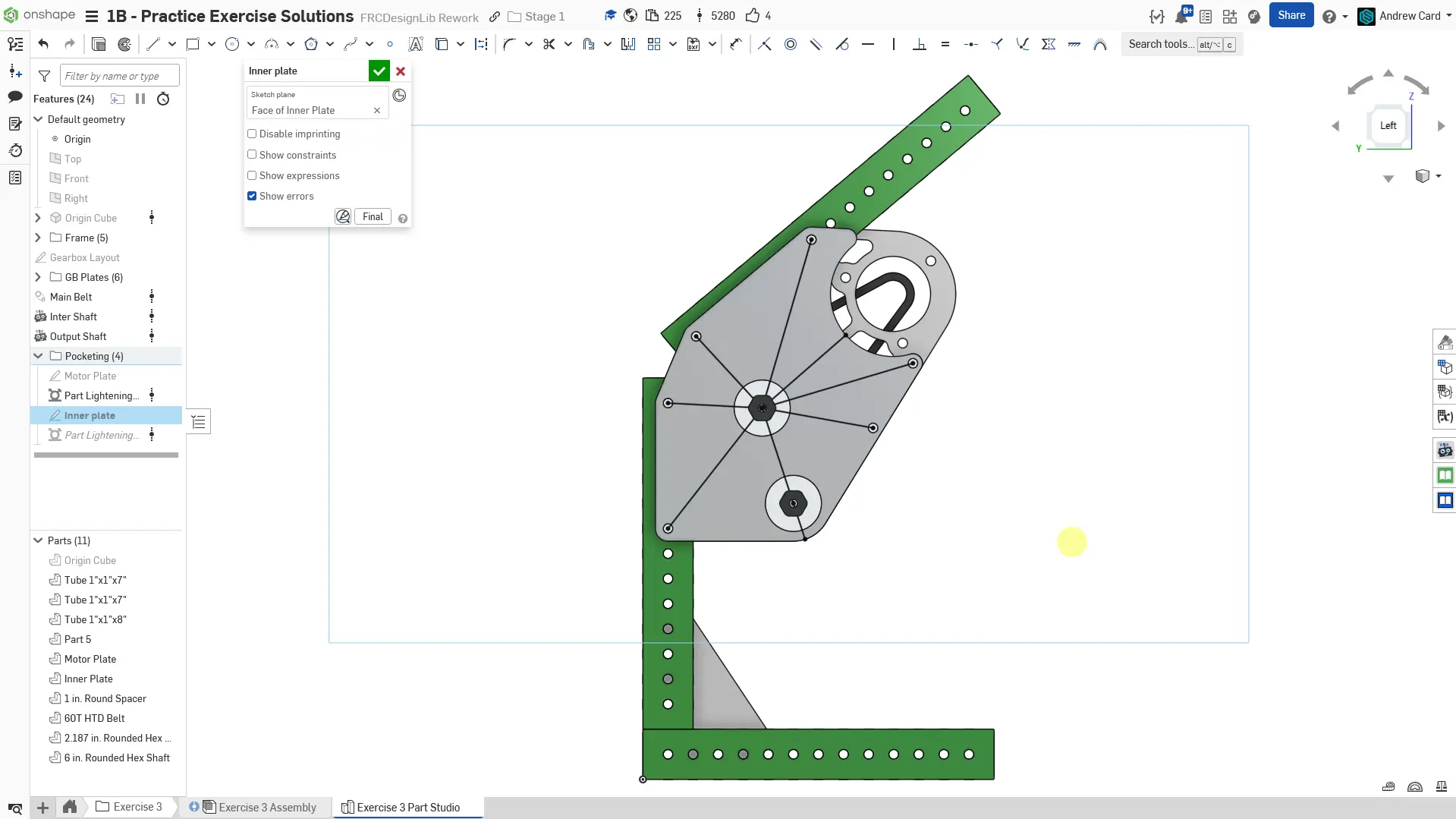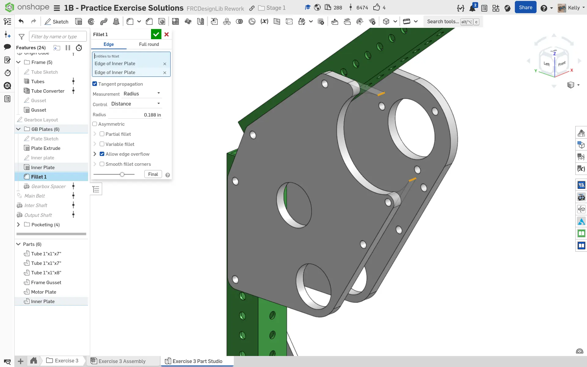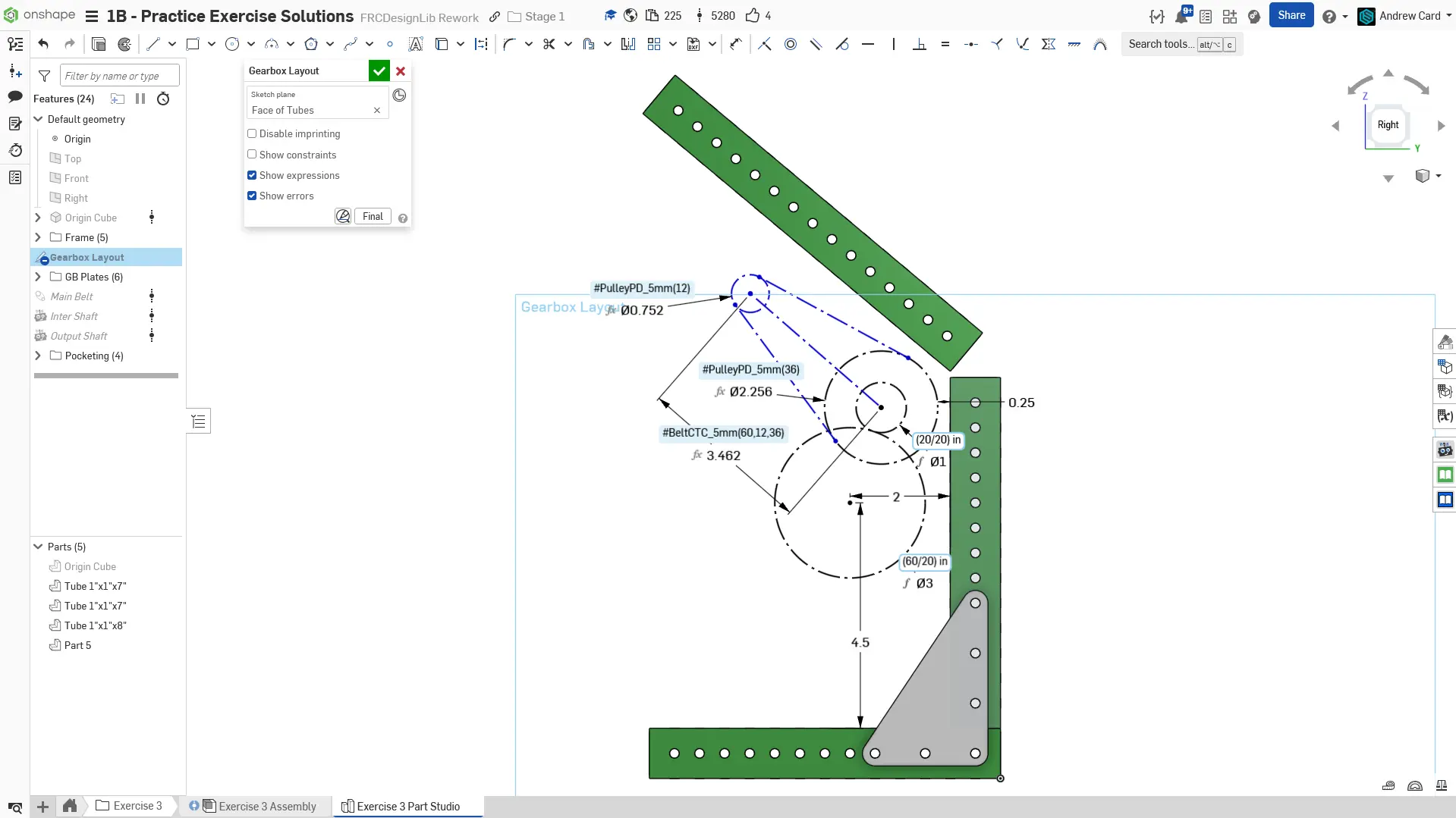 Kopyaladığınız belgede "Exercise #3 Part Studio" sekmesine gidin ve bu egzersiz için part studioyu tamamlamak üzere slaytlardaki talimatları izleyin.
