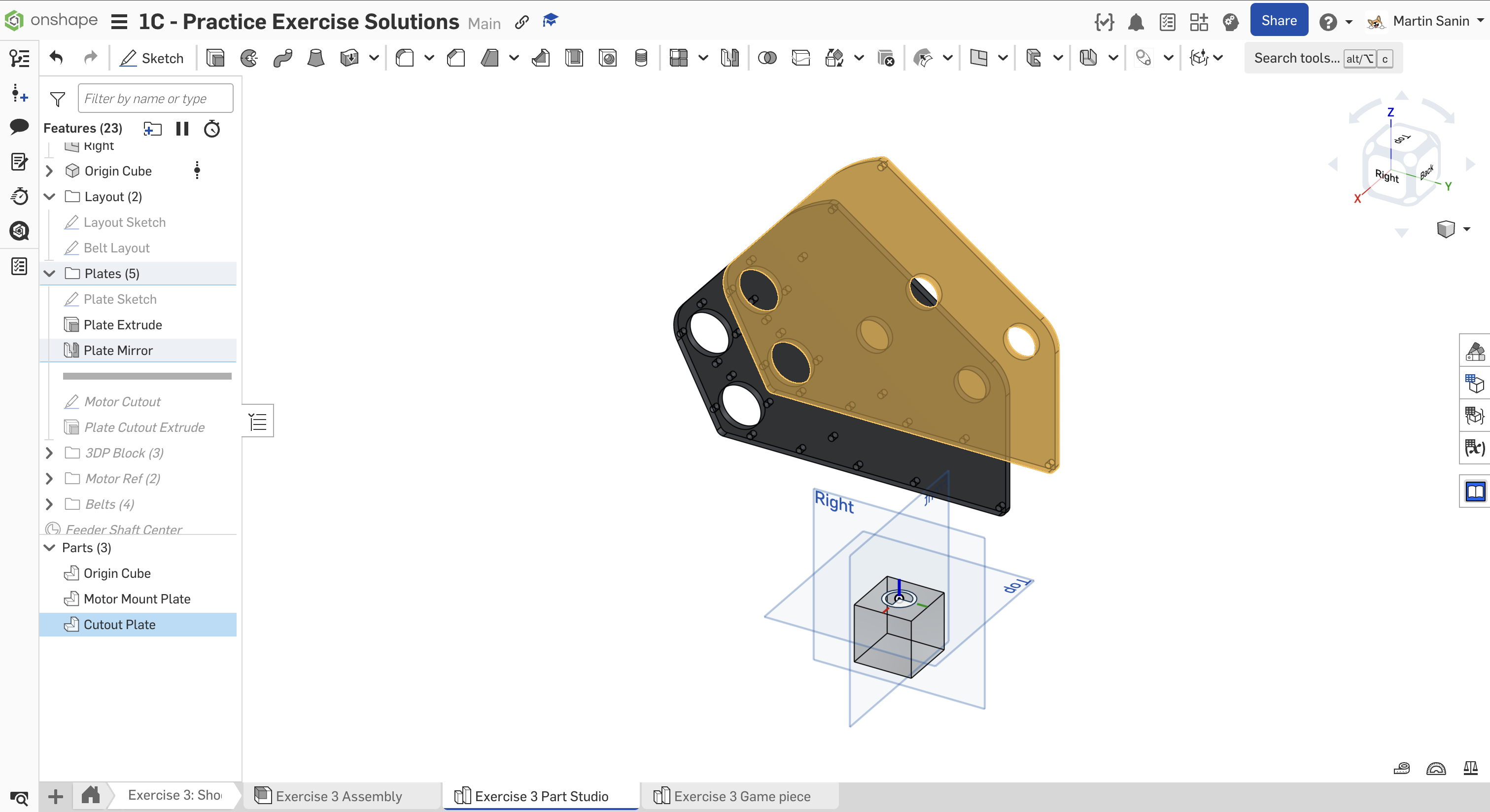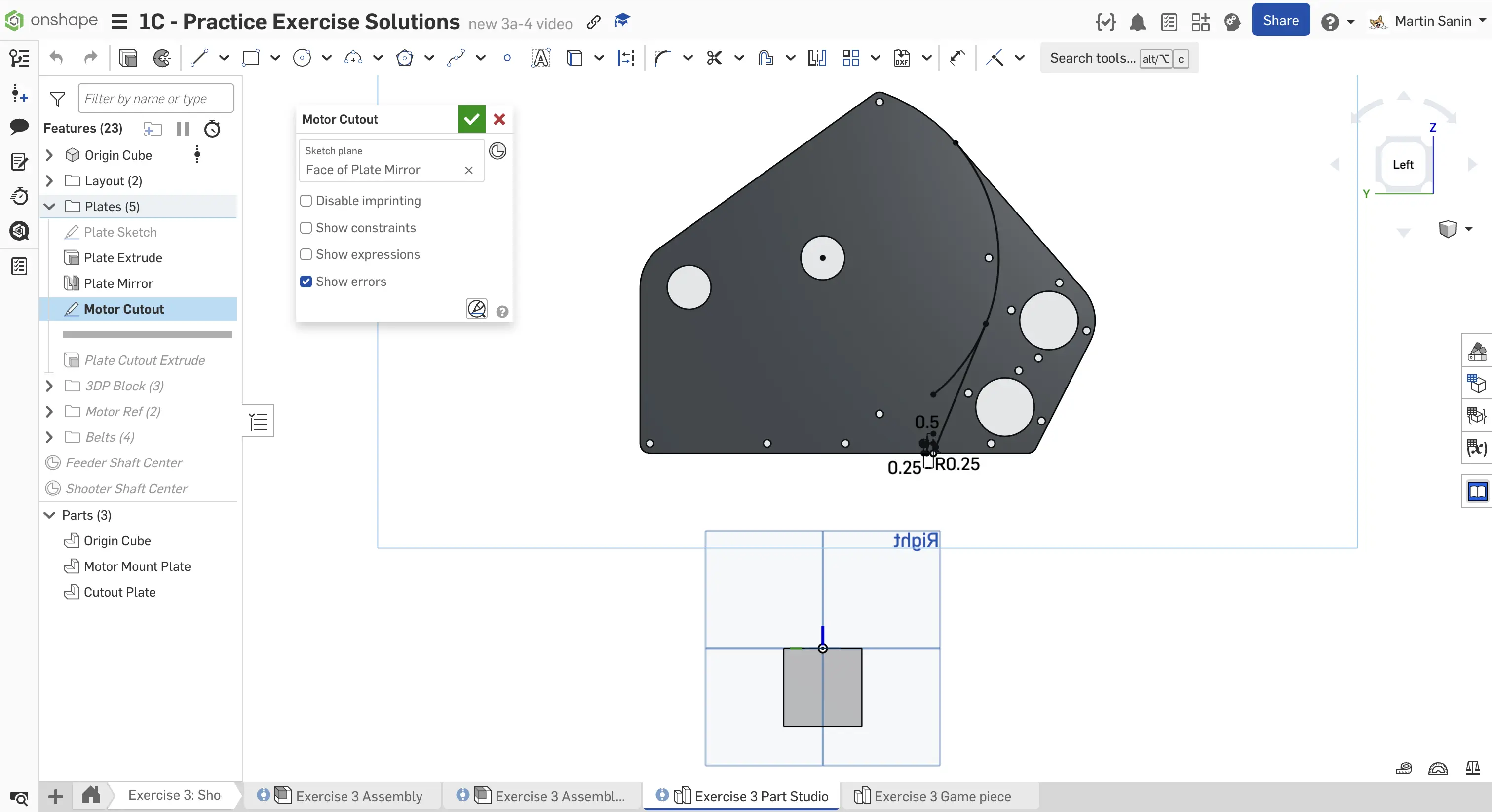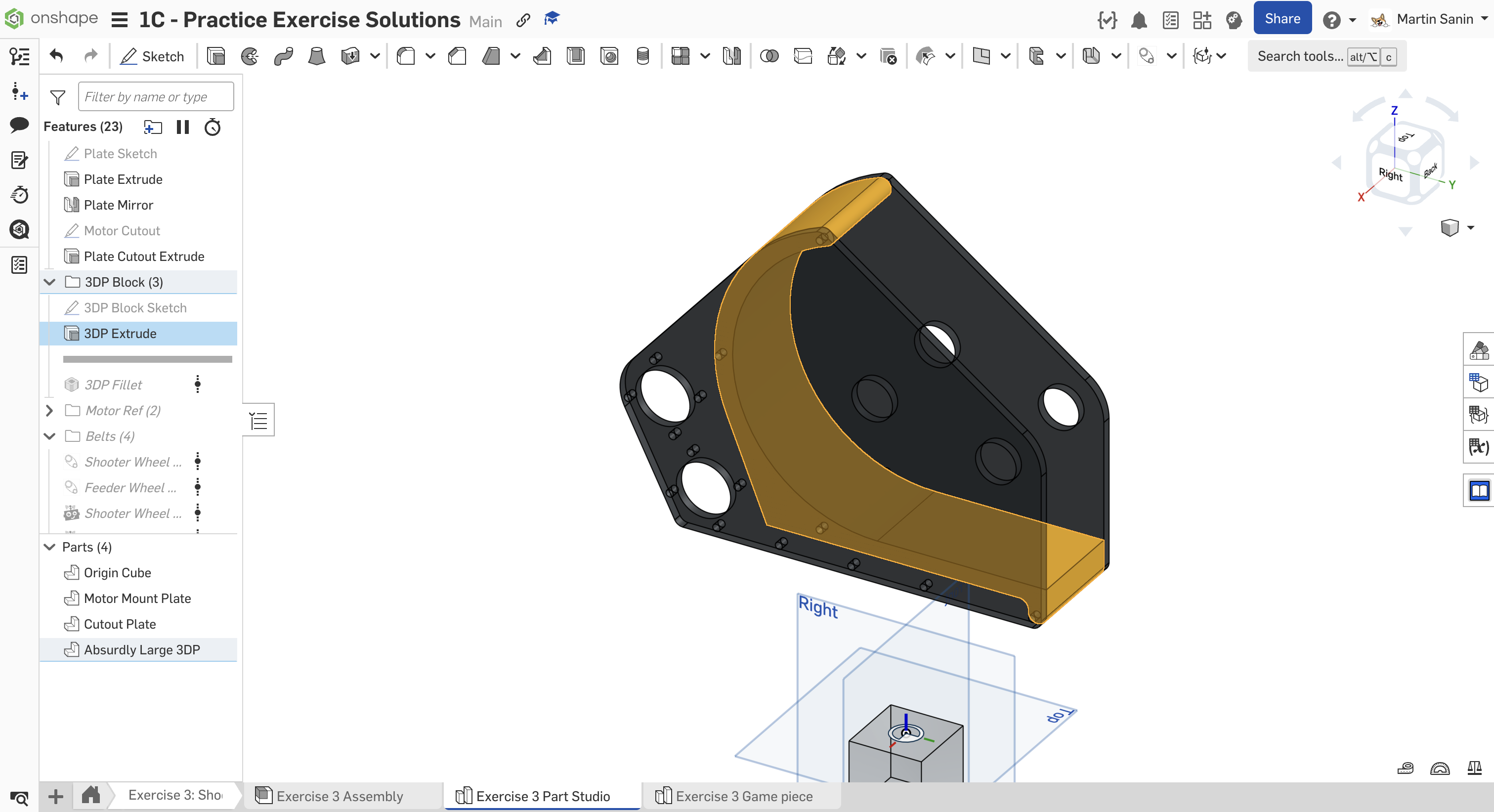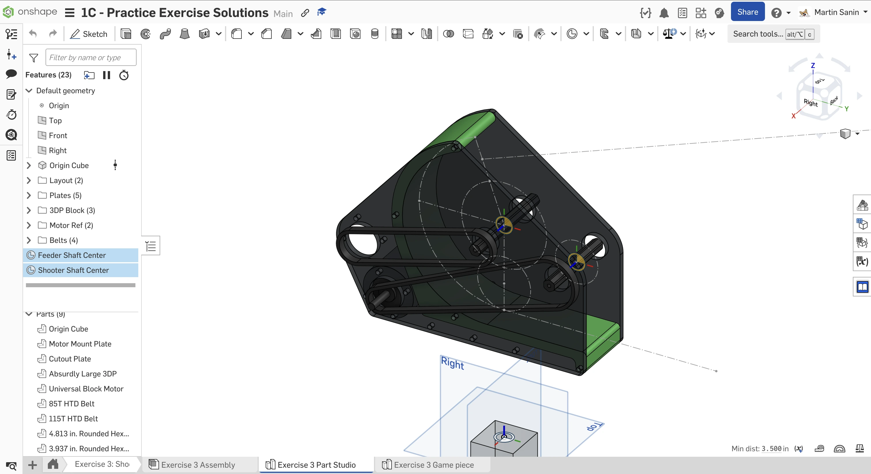 Kopyalanmış belgenizdeki "Exercise #3 Part Studio" sekmesine gidin ve bu egzersiz için part studio'yu tamamlamak için slaytlardaki talimatları izleyin.