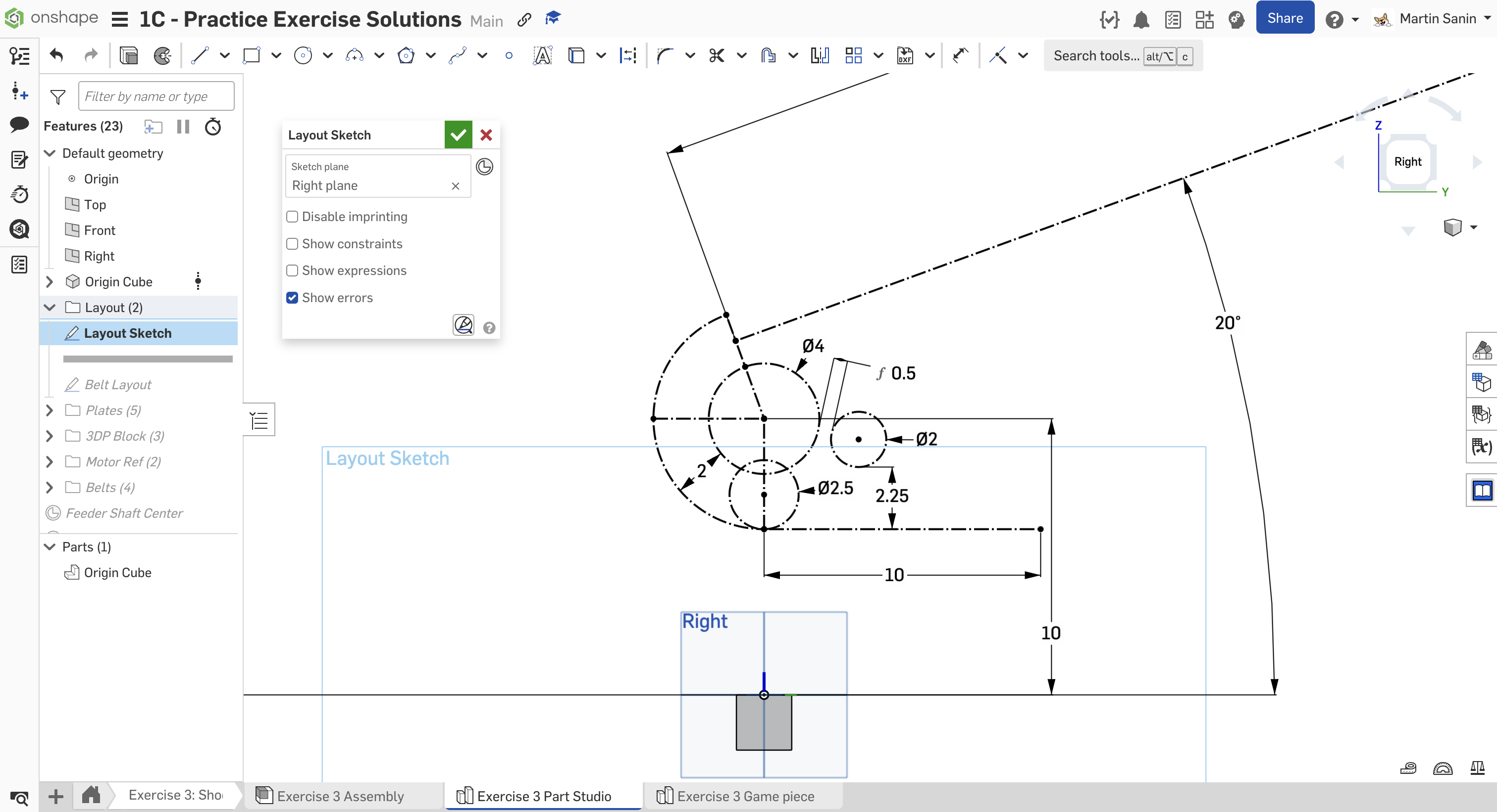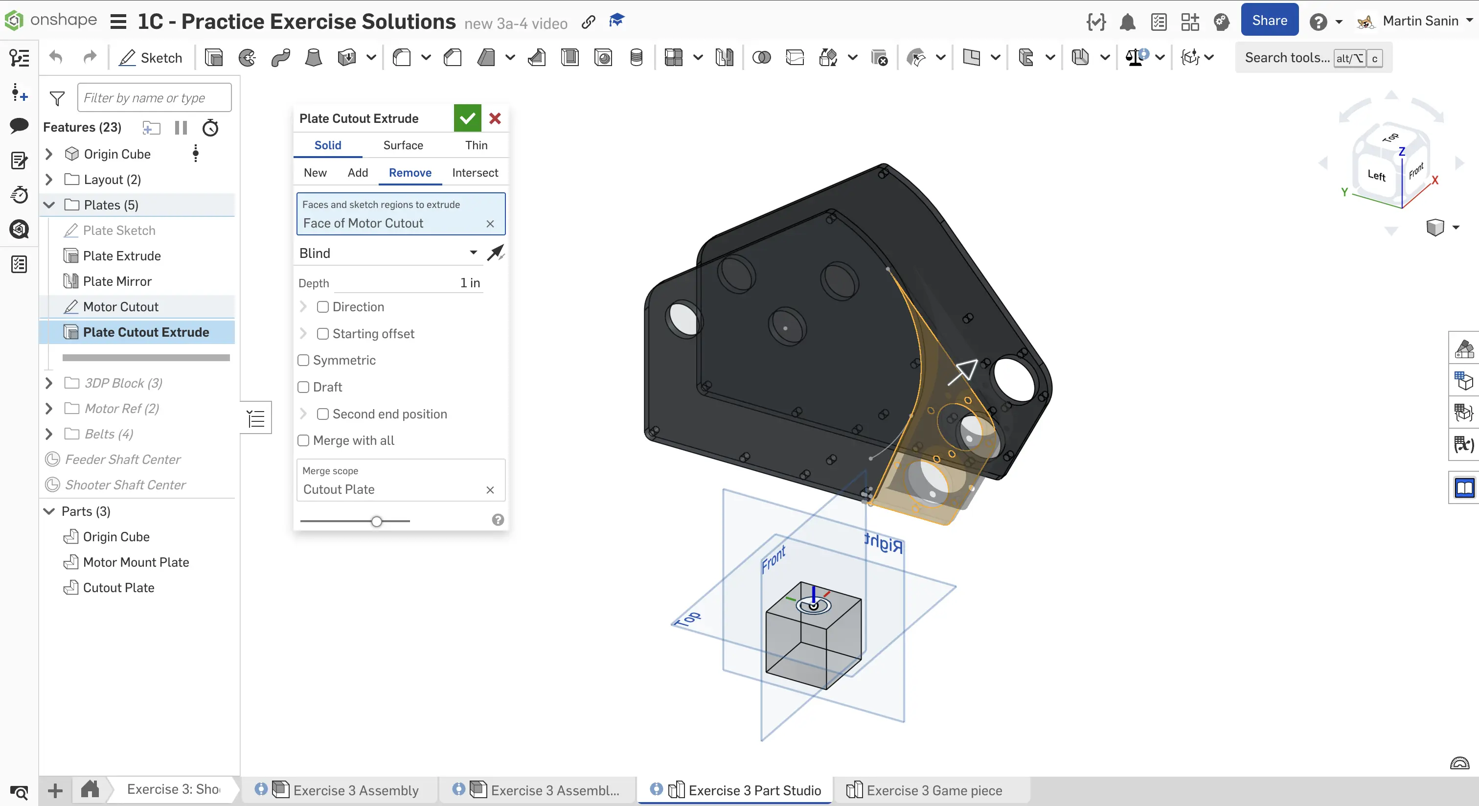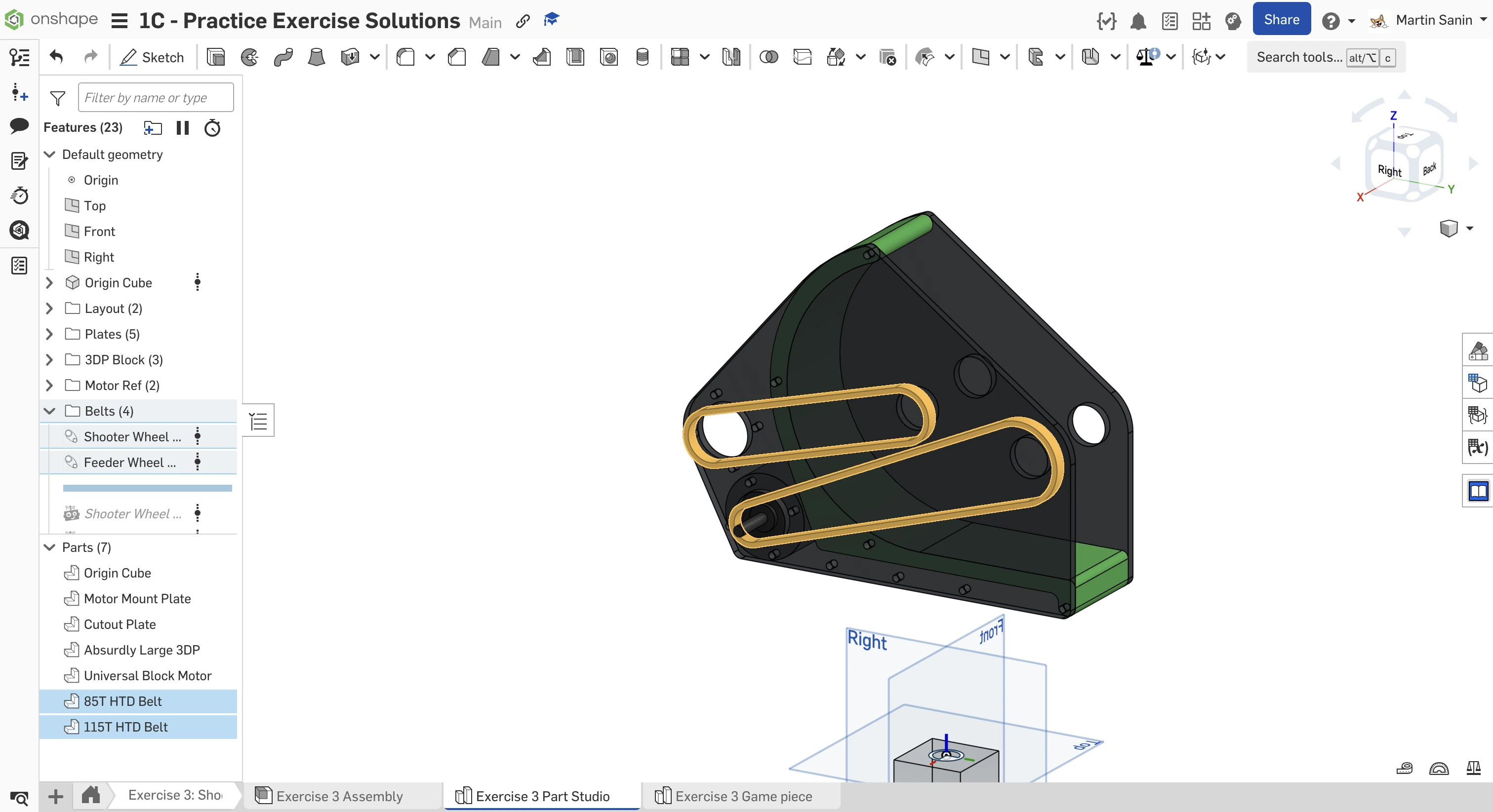 Kopyalanmış belgenizdeki "Exercise #3 Part Studio" sekmesine gidin ve bu egzersiz için part studio'yu tamamlamak için slaytlardaki talimatları izleyin.