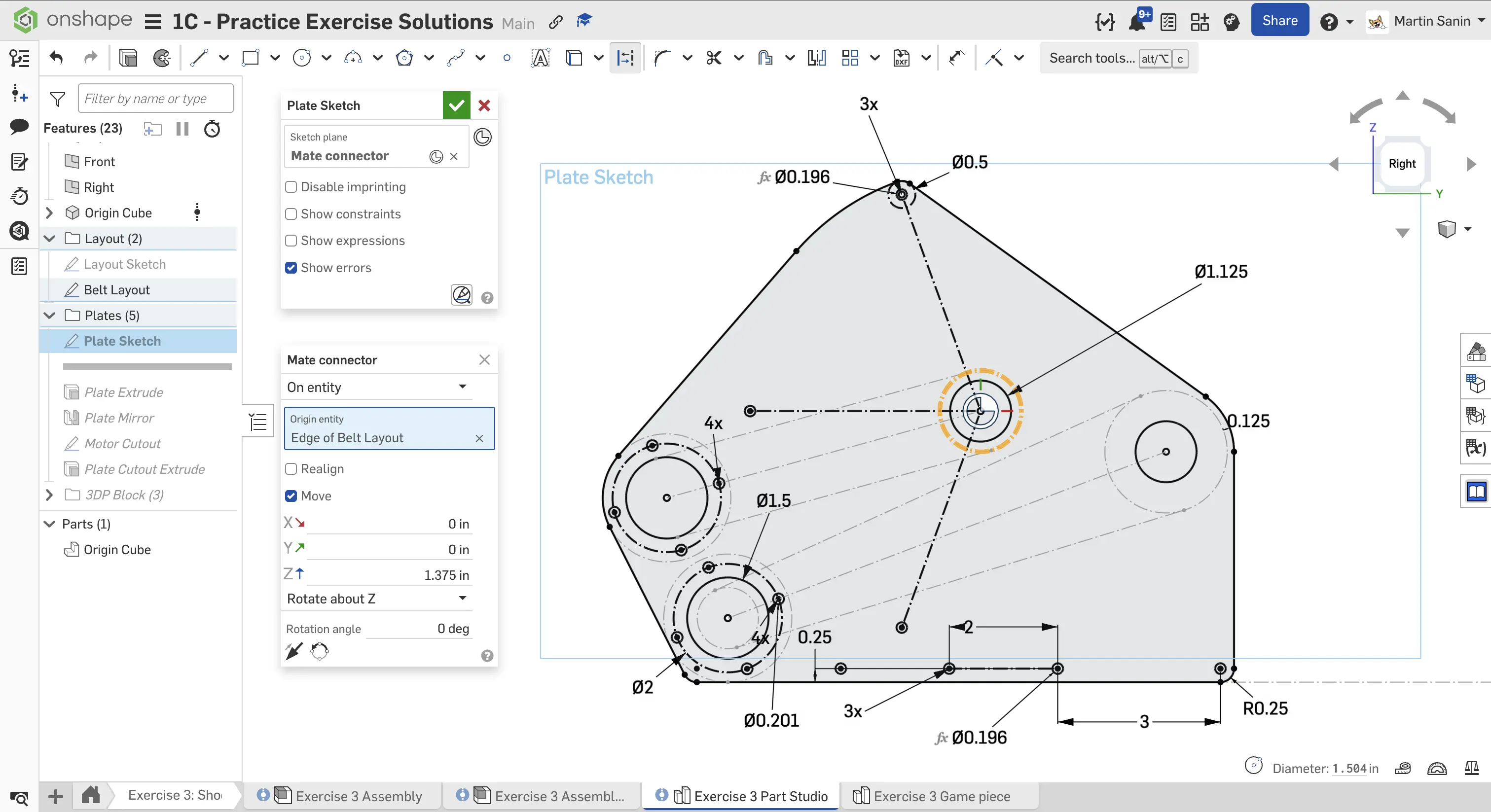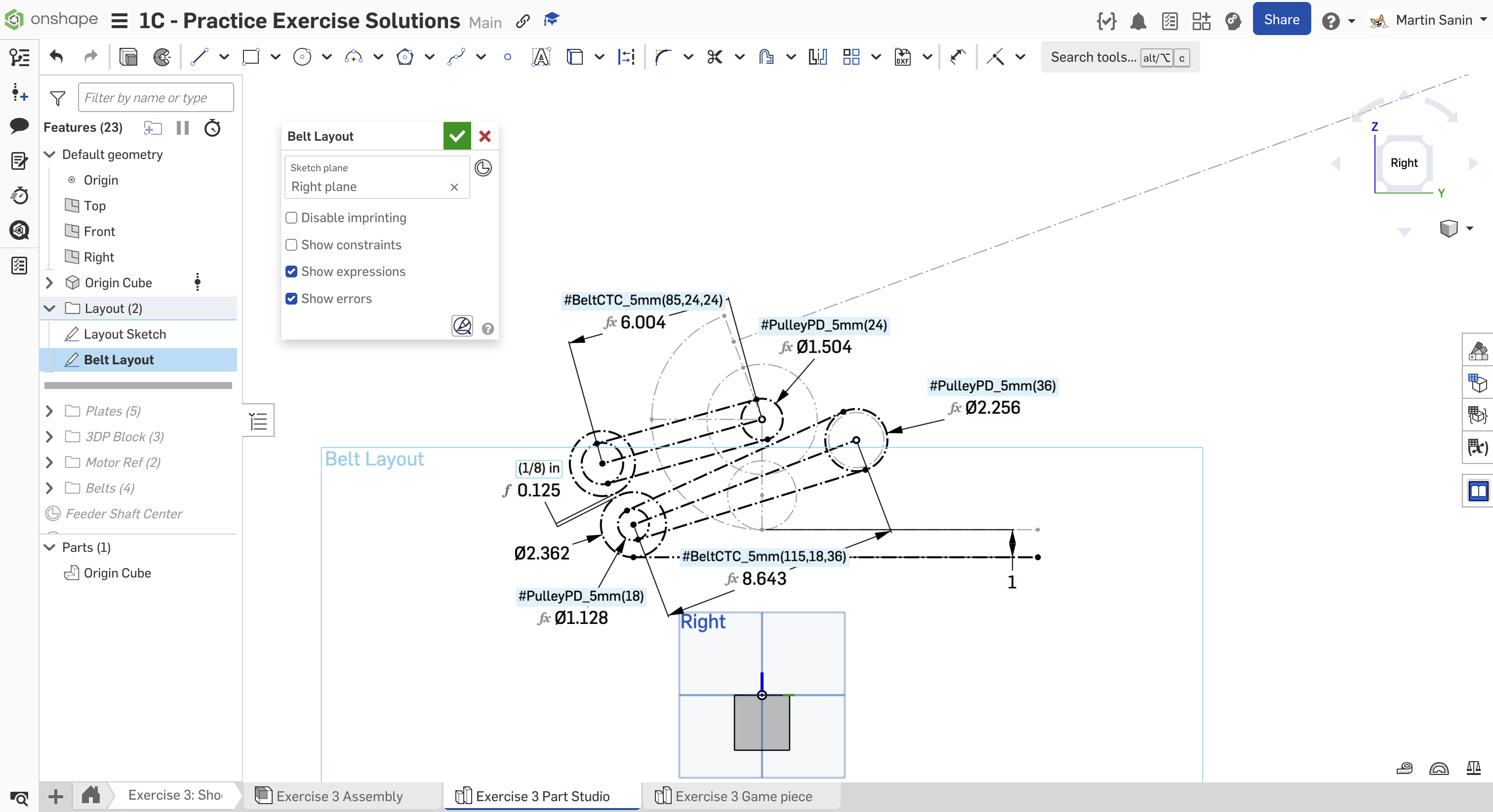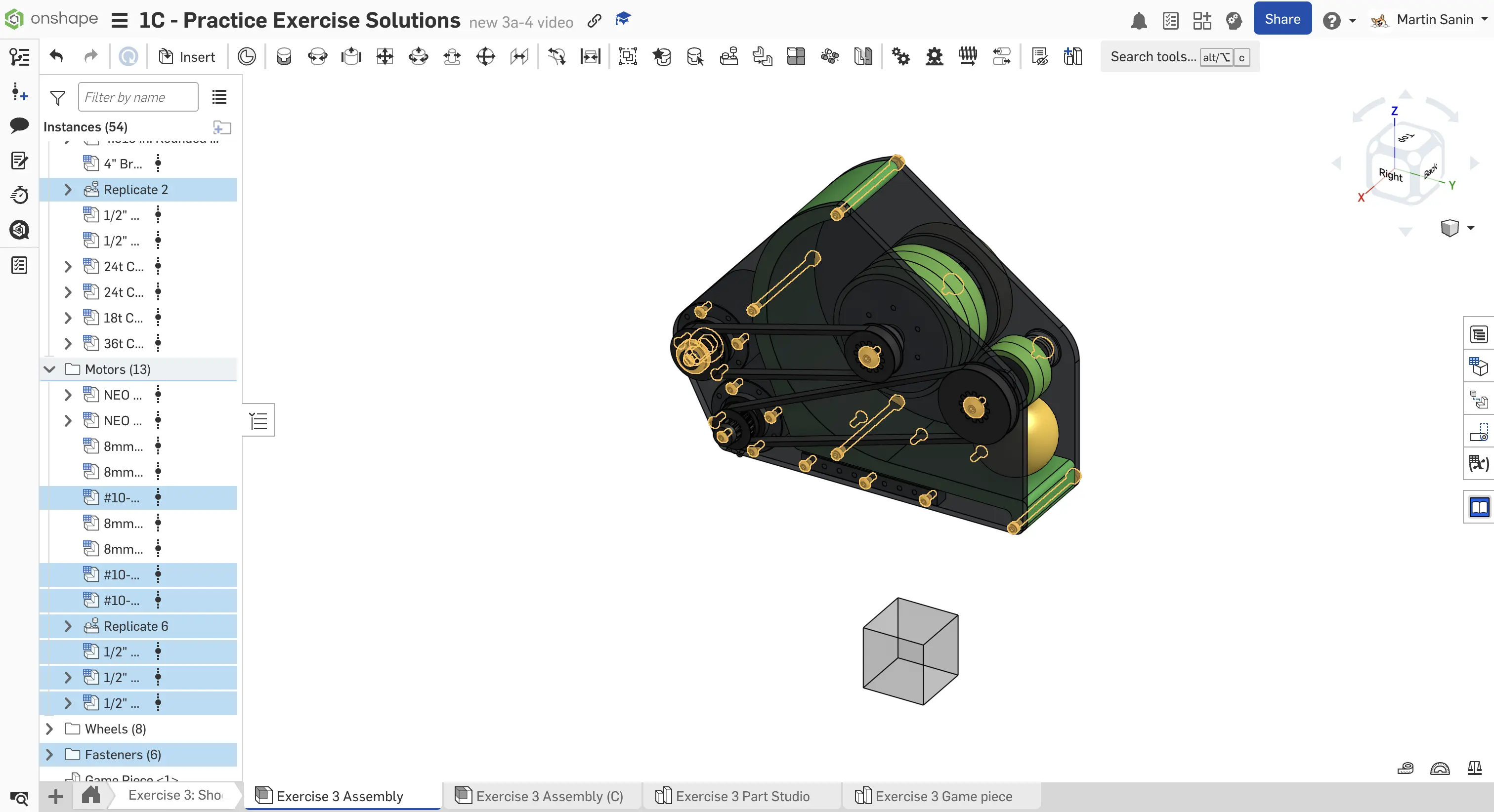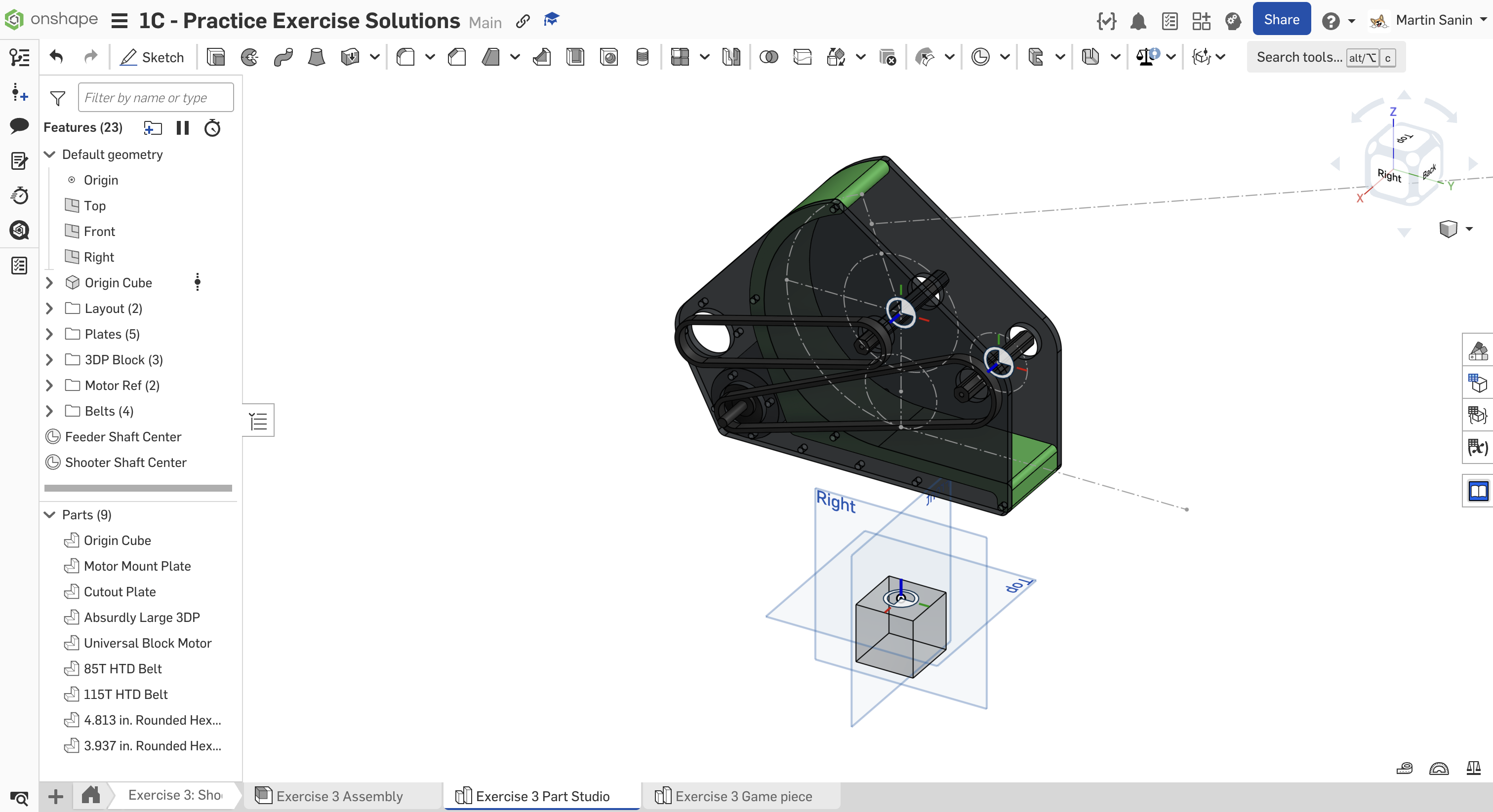 Kopyalanmış belgenizdeki "Exercise #3 Part Studio" sekmesine gidin ve bu egzersiz için part studio'yu tamamlamak için slaytlardaki talimatları izleyin.