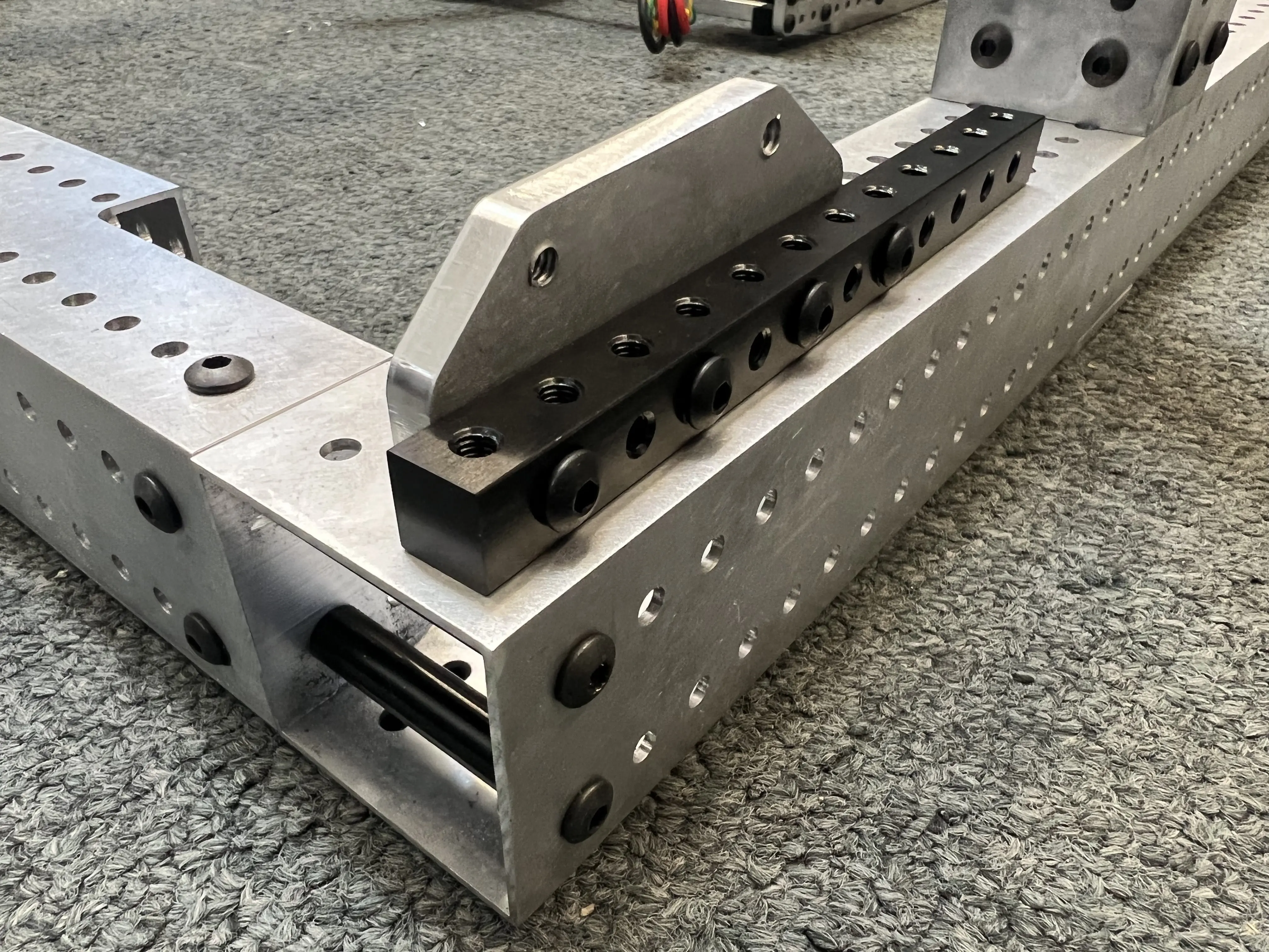 Nut şeritleri, genellikle dik plakaları veya plakayı tüpe bağlamak için kullanılan çok yönlü yapısal bir bileşendir. WCP, REV ve Last Anvil gibi satıcılar #10-32 veya #8-32 tapped delikli 6" uzunluğunda segmentlerde nut şeritleri sunar. Bu nut şeritleri çok sağlamdır ve kolayca herhangi bir uzunluğa kesilebilir. Tamamladığınız egzersizde, nut şeritleri shooter'ı herhangi bir yüzeye kolayca monte etmenizi sağlar.