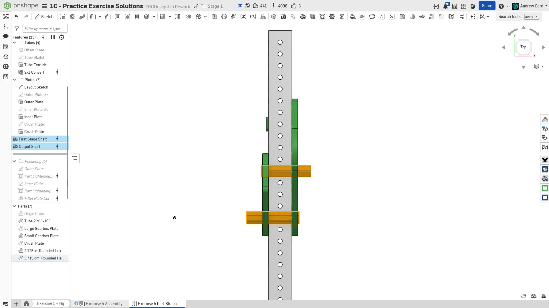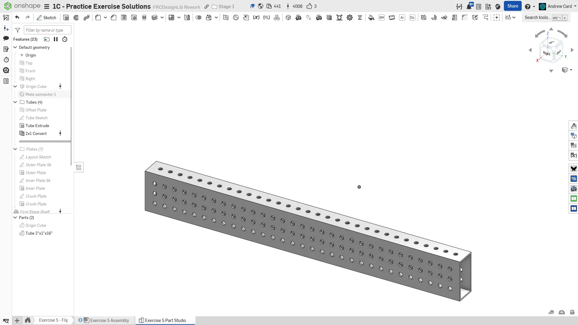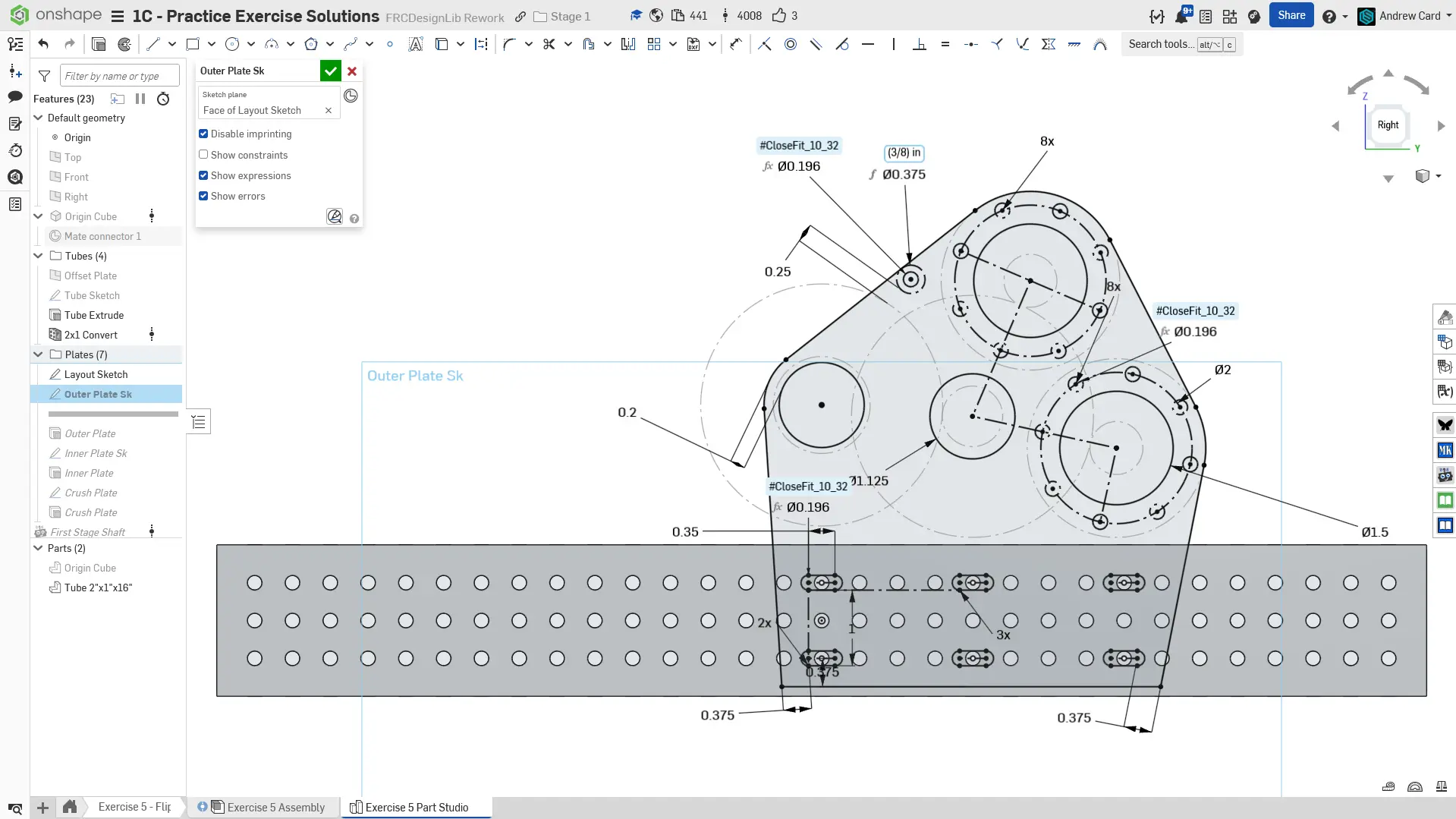 Kopyalanmış belgenizdeki "Exercise #5 Part Studio" sekmesine gidin ve bu egzersiz için part studio'yu tamamlamak için solution belgesine başvurun. Aşağıdaki talimat slaytları sadece genel bir outline ve bazı önemli detaylar sağlar.
