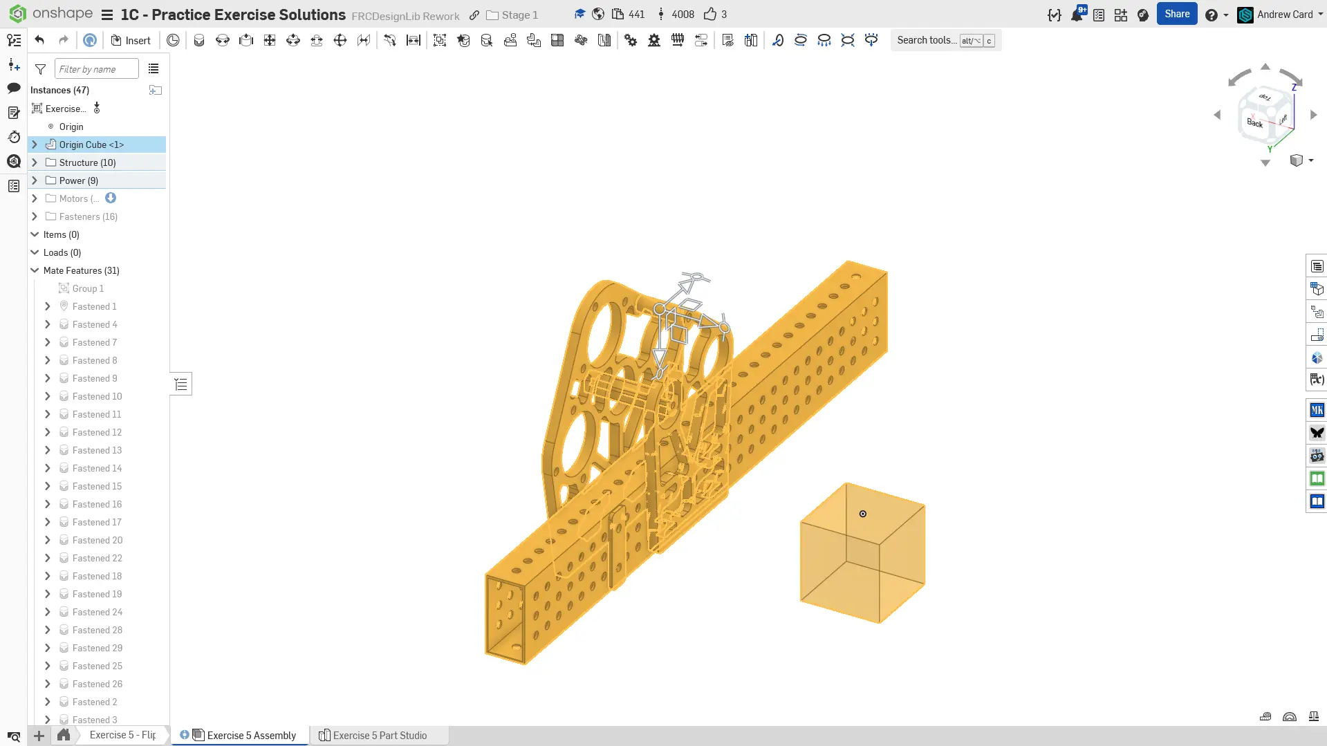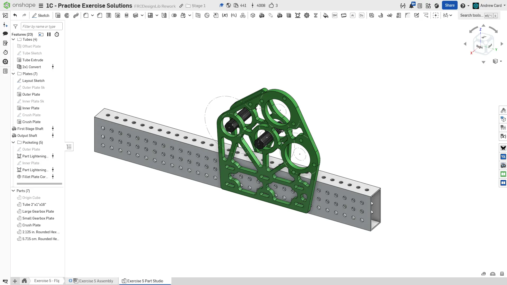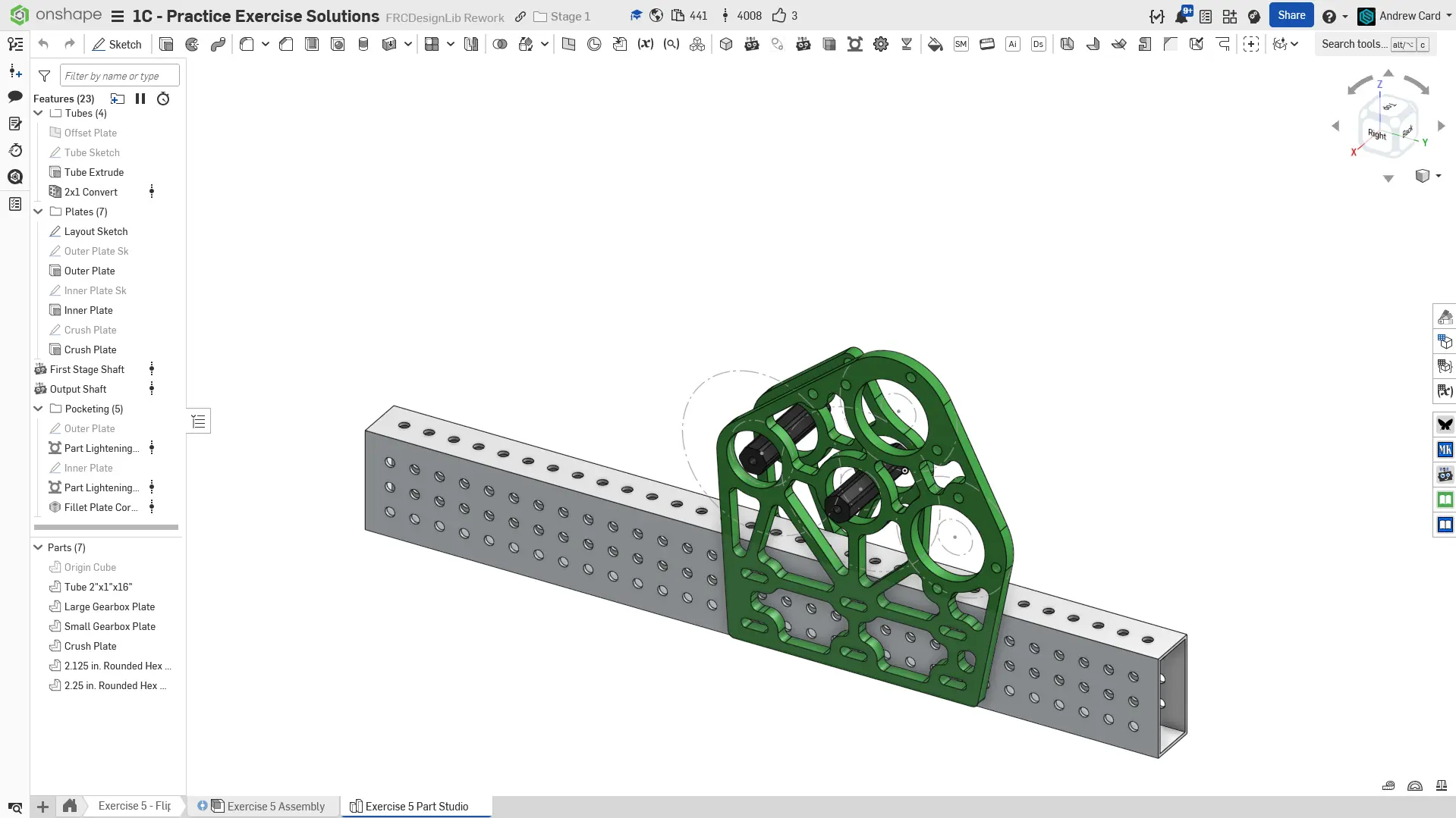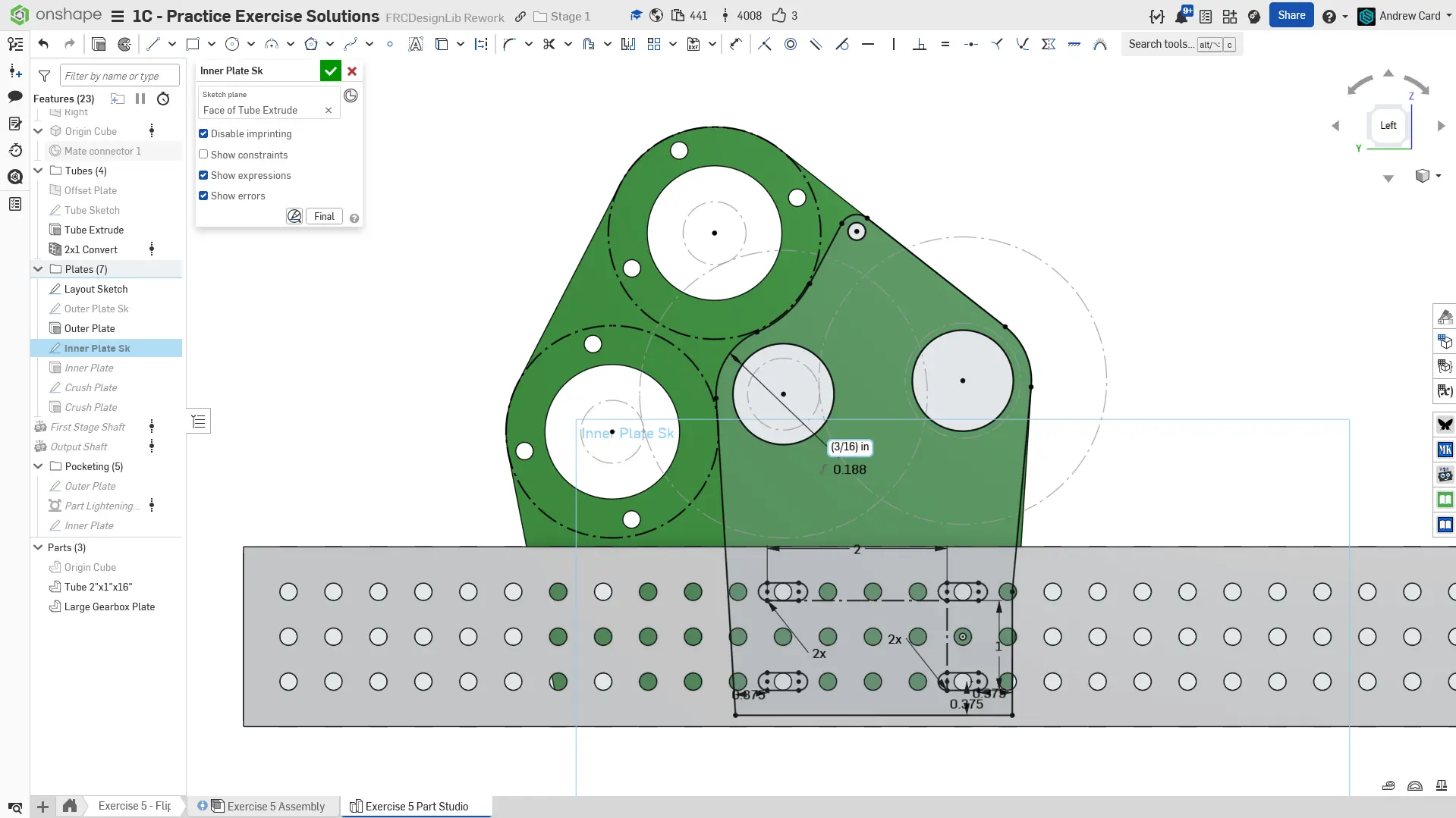 Kopyalanmış belgenizdeki "Exercise #5 Part Studio" sekmesine gidin ve bu egzersiz için part studio'yu tamamlamak için solution belgesine başvurun. Aşağıdaki talimat slaytları sadece genel bir outline ve bazı önemli detaylar sağlar.