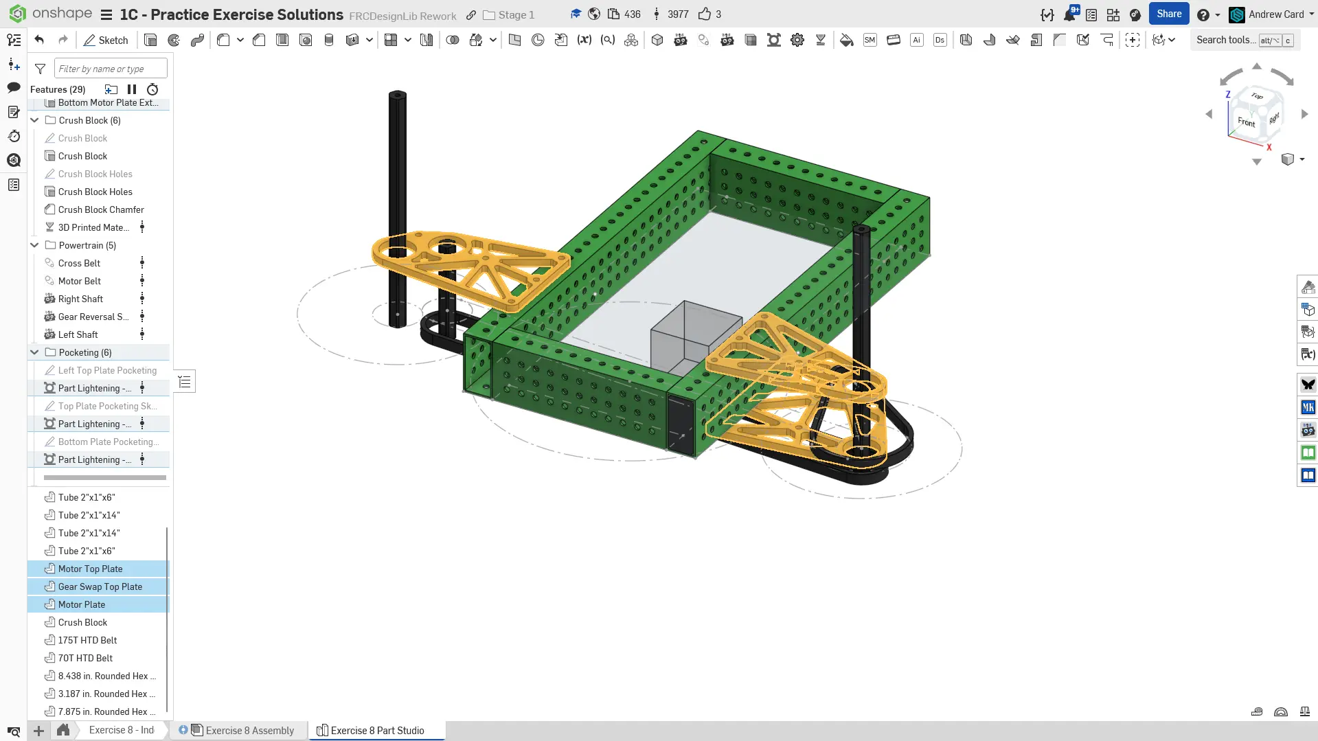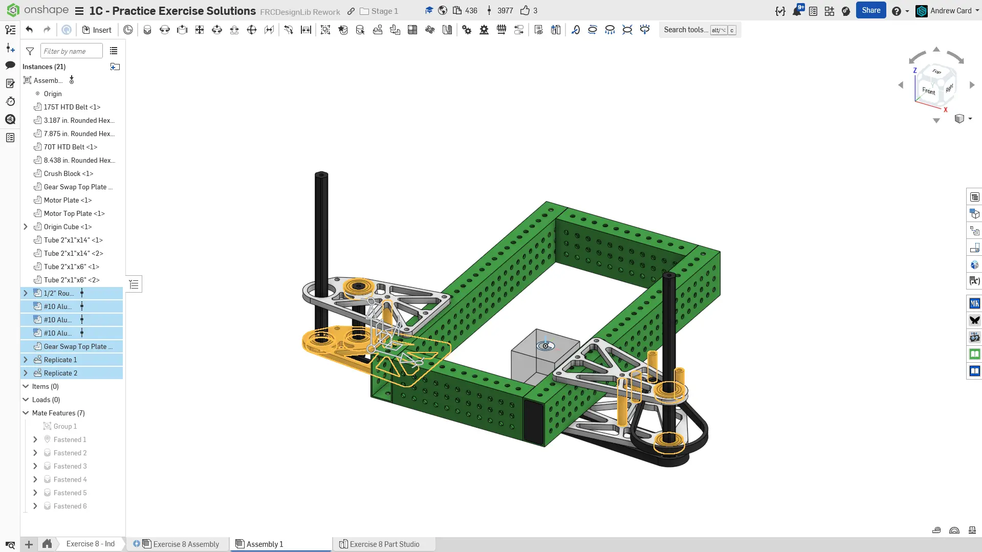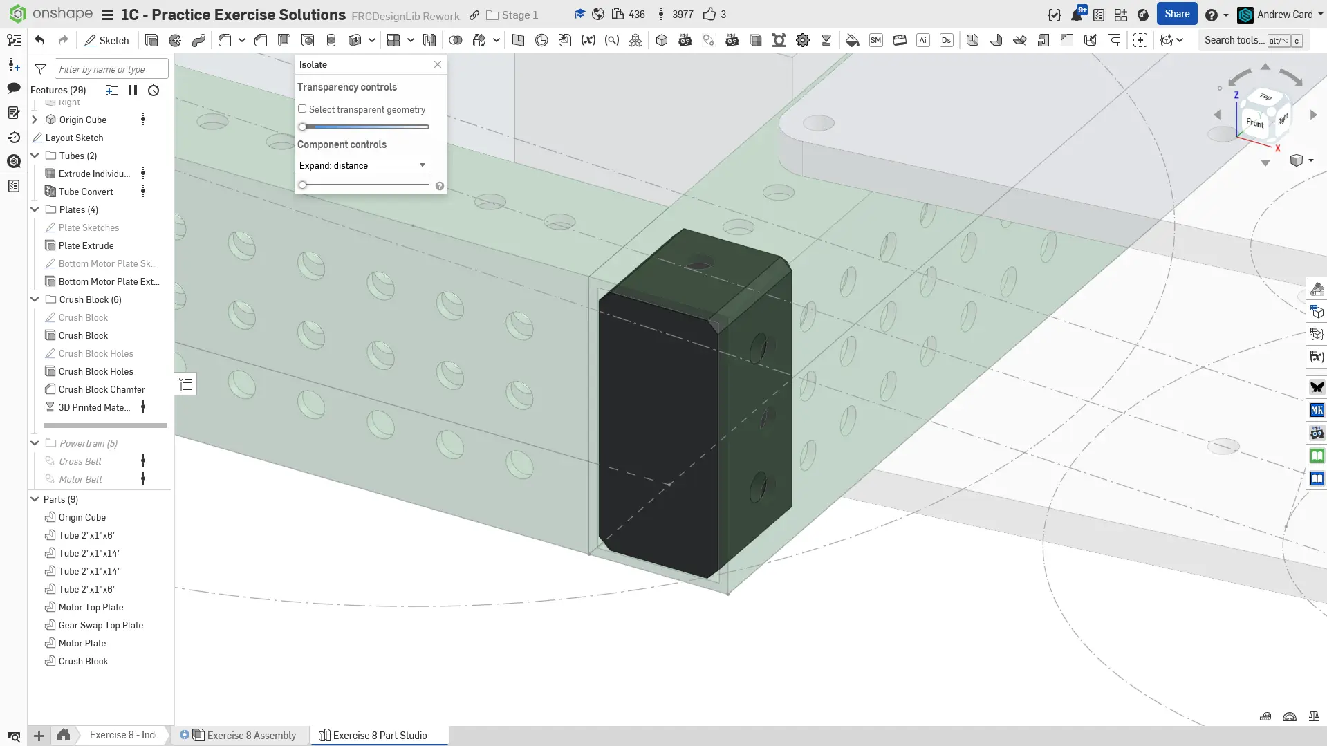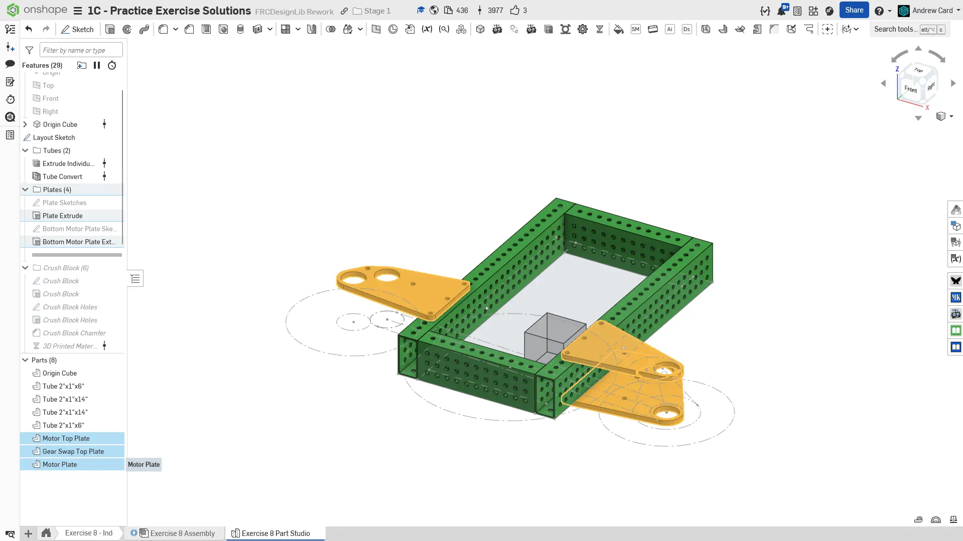 Kopyalanmış belgenizdeki "Exercise #8 Part Studio" sekmesine gidin ve bu egzersiz için part studio'yu tamamlamak için solution belgesine başvurun. Aşağıdaki talimat slaytları sadece genel bir outline ve bazı önemli detaylar sağlar.