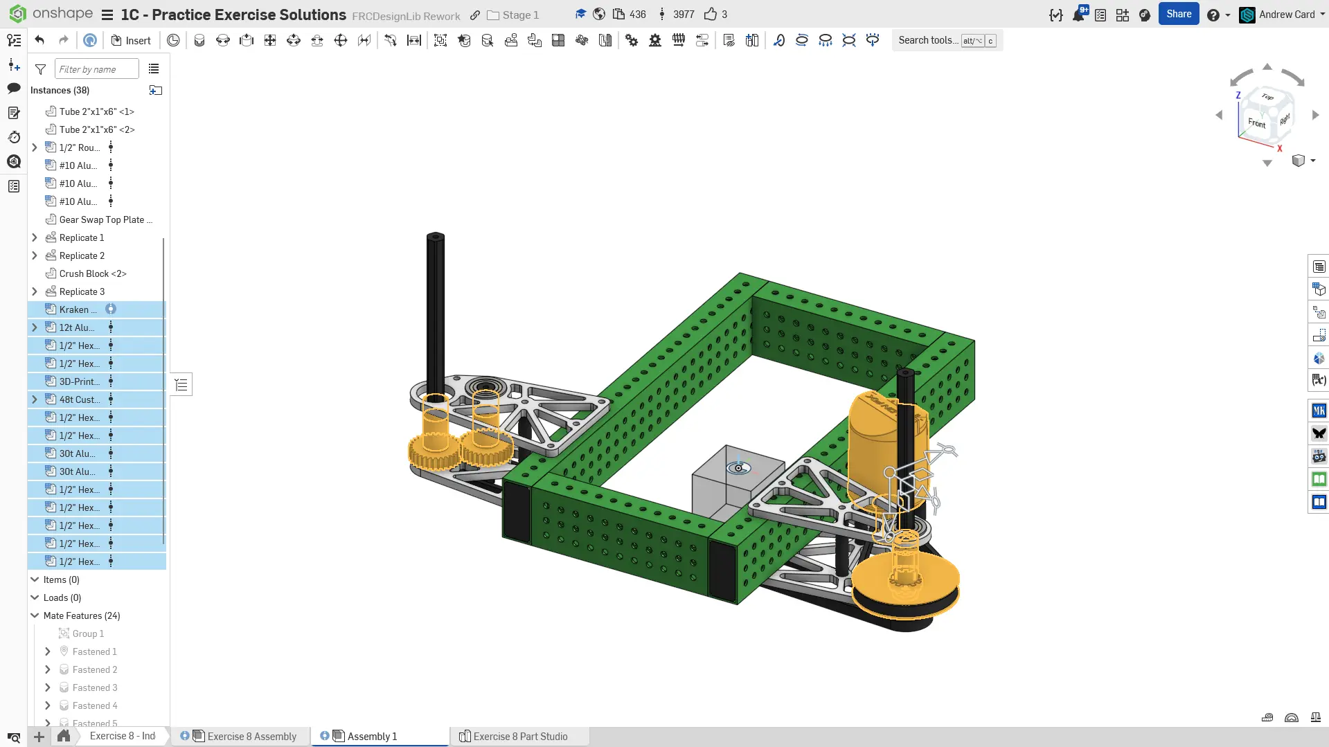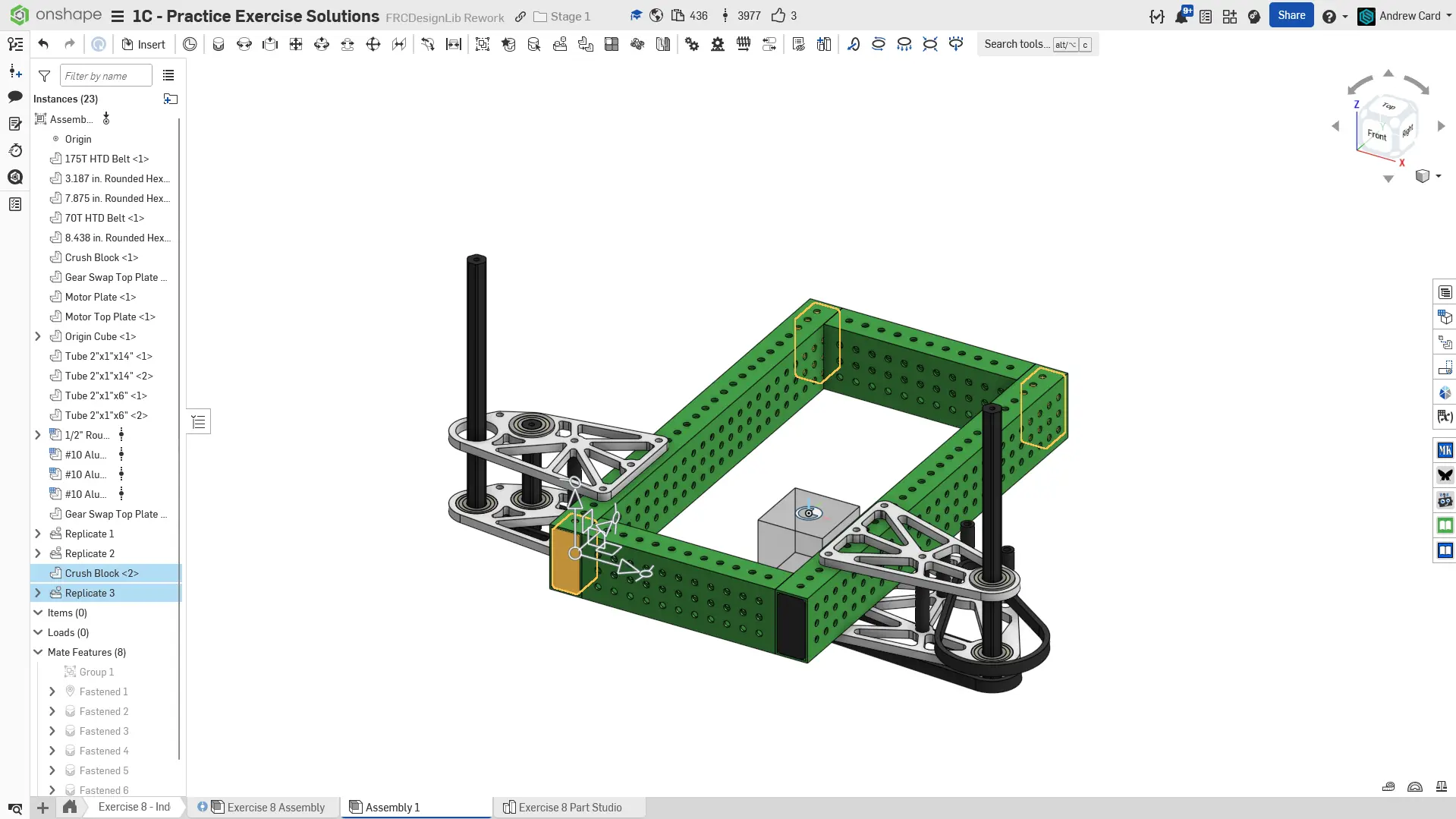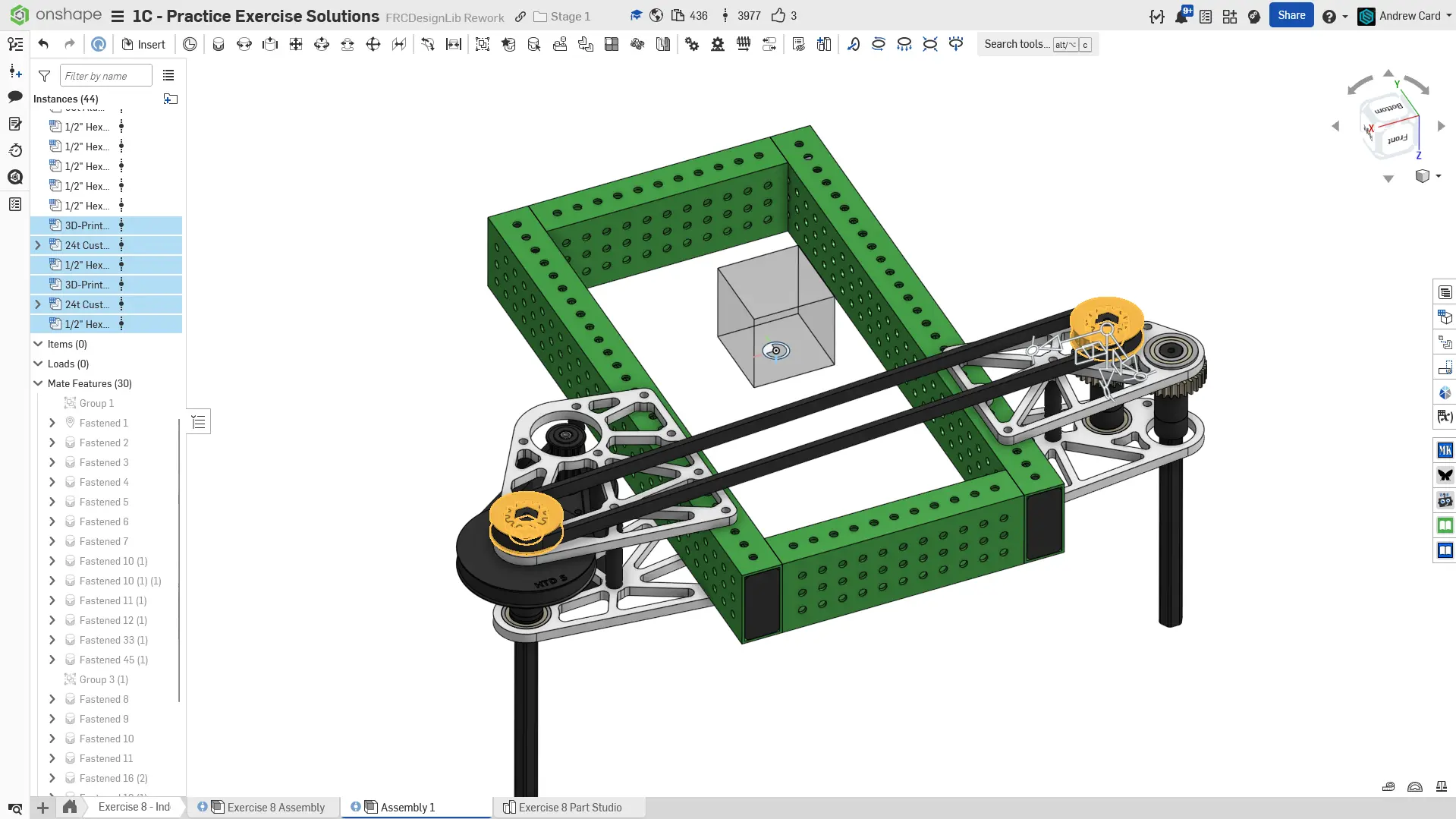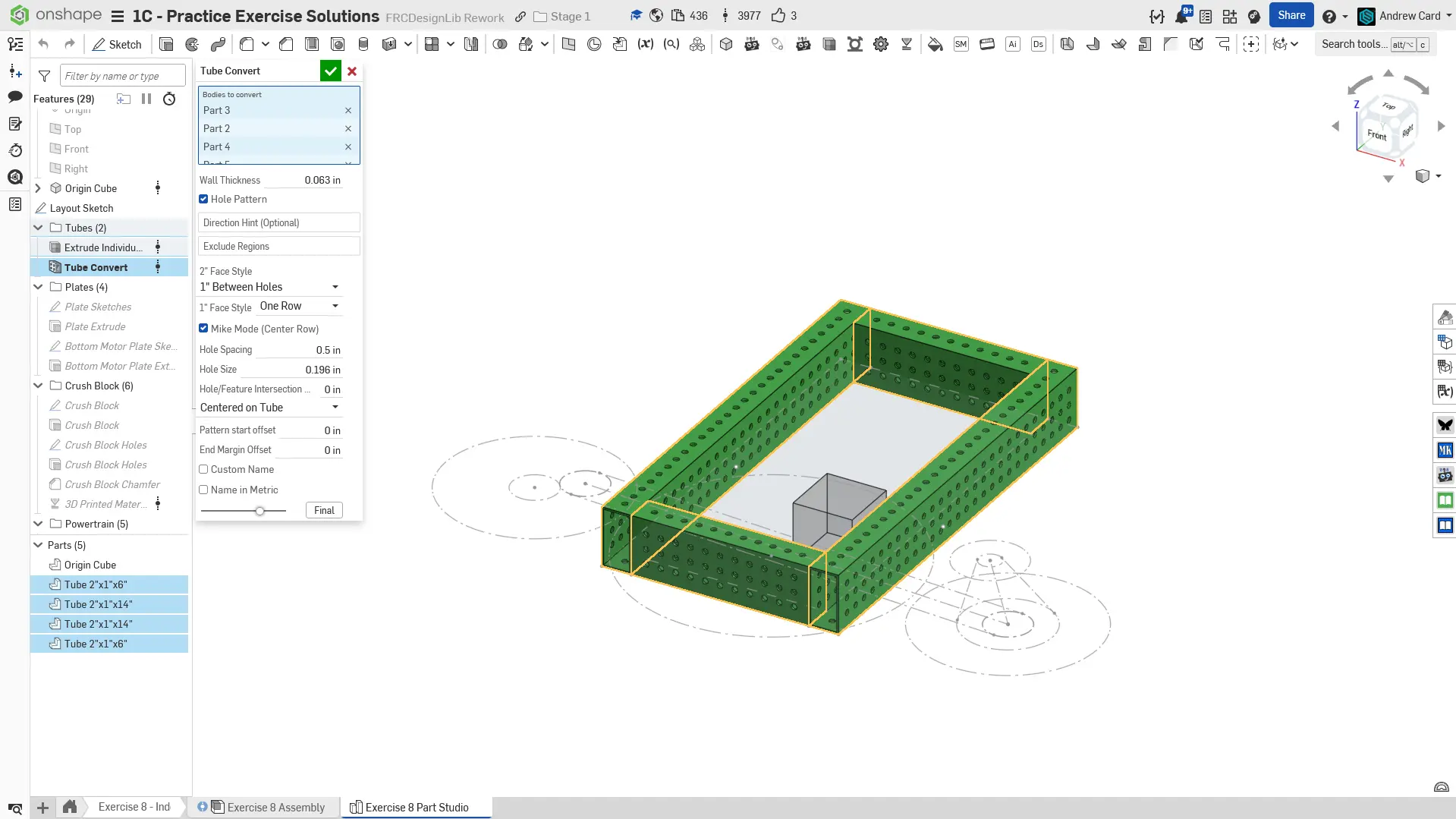 Kopyalanmış belgenizdeki "Exercise #8 Part Studio" sekmesine gidin ve bu egzersiz için part studio'yu tamamlamak için solution belgesine başvurun. Aşağıdaki talimat slaytları sadece genel bir outline ve bazı önemli detaylar sağlar.