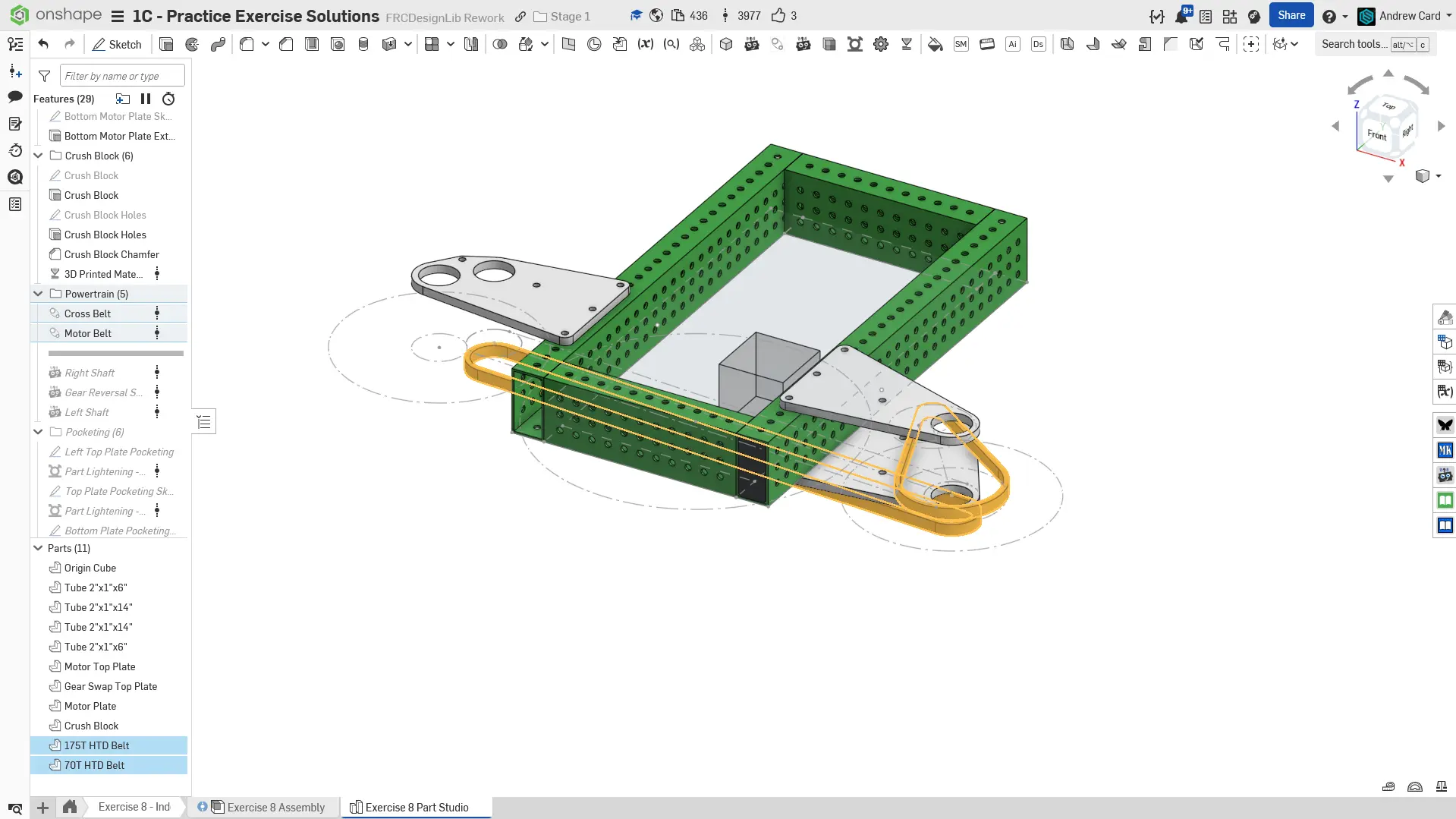 5. Belt & Chain Gen Featurescript'ini kullanarak belt'leri modelleyin.