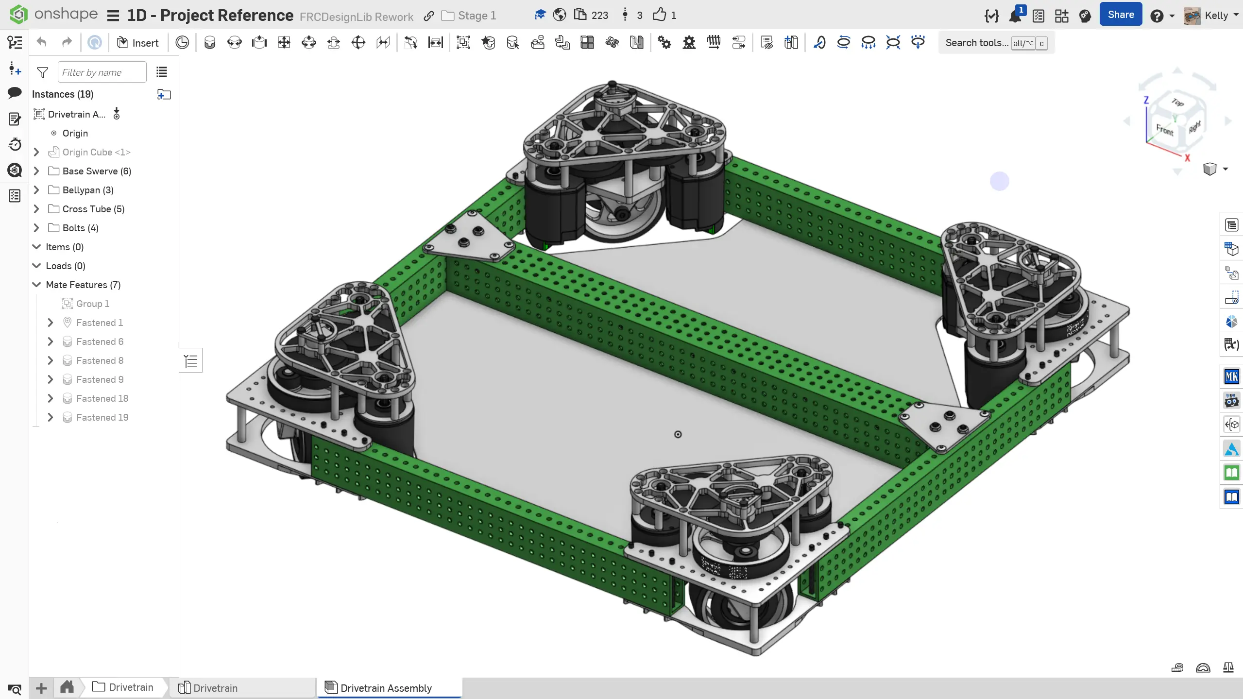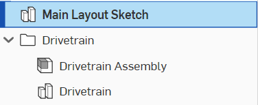 Montajınızdaki örnekleri klasörlere (yani çerçeve, swerve modülleri) sıraladığınızdan emin olun ve kullanılan tüm patternleri ve repliceleri adlandırın. Bu, ileride montaj içinde bileşenleri bulmanıza yardımcı olacaktır.