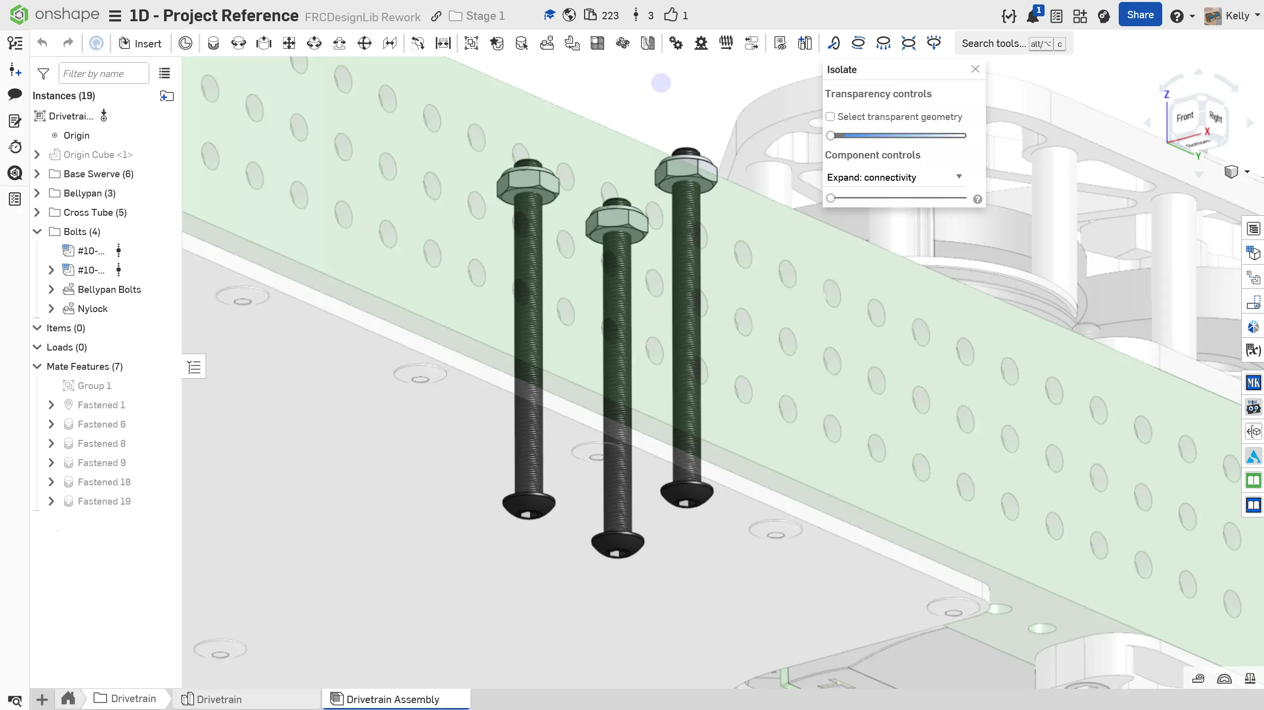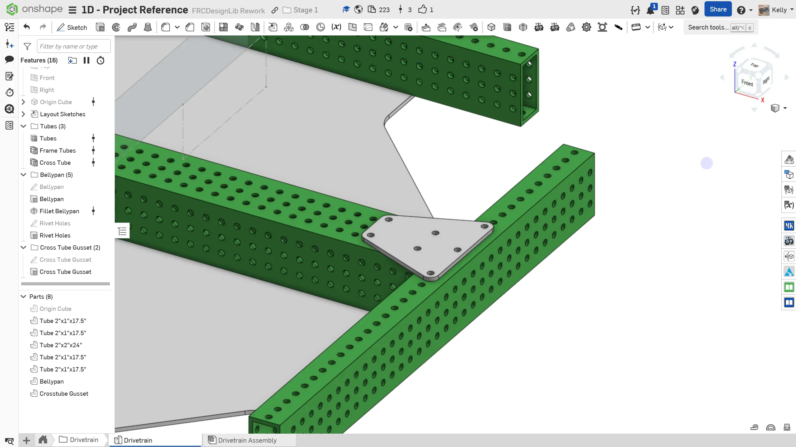 Başlamak için Drivetrain klasöründeki Drivetrain Part Studio'ya gidin. Köşebenti eklemek için slaytlardaki talimatları izleyin.