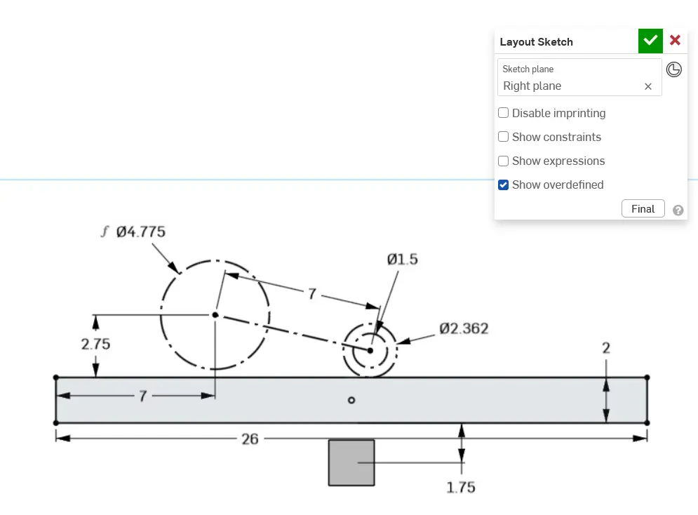 - Her iki sprocket'in step circles'ını ve motorun çapını temsil eden yapı daireleri oluşturun.