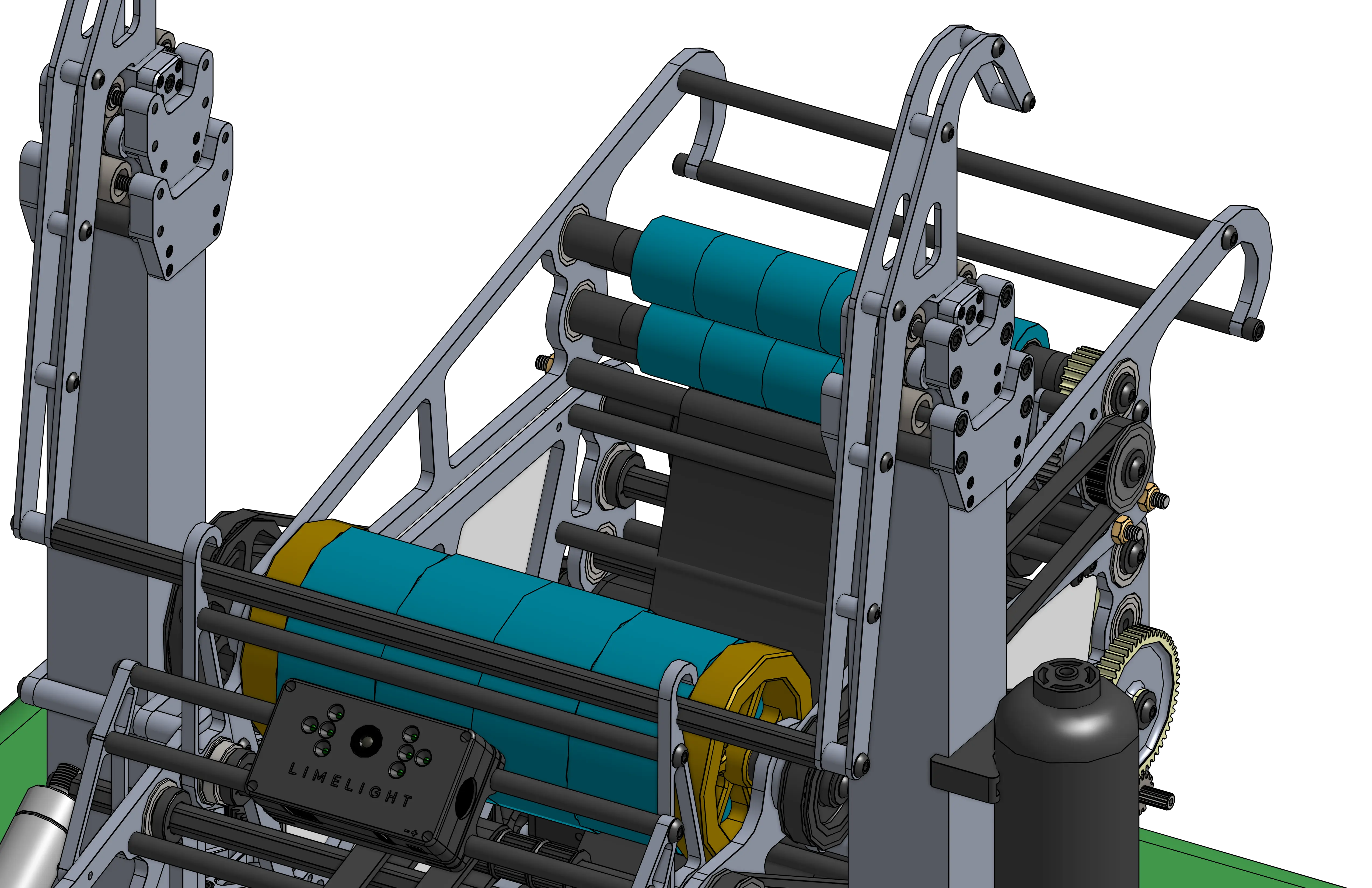Arka silindirler ve ağır bir flywheel özellikli kompakt bir top fırlatıcı
