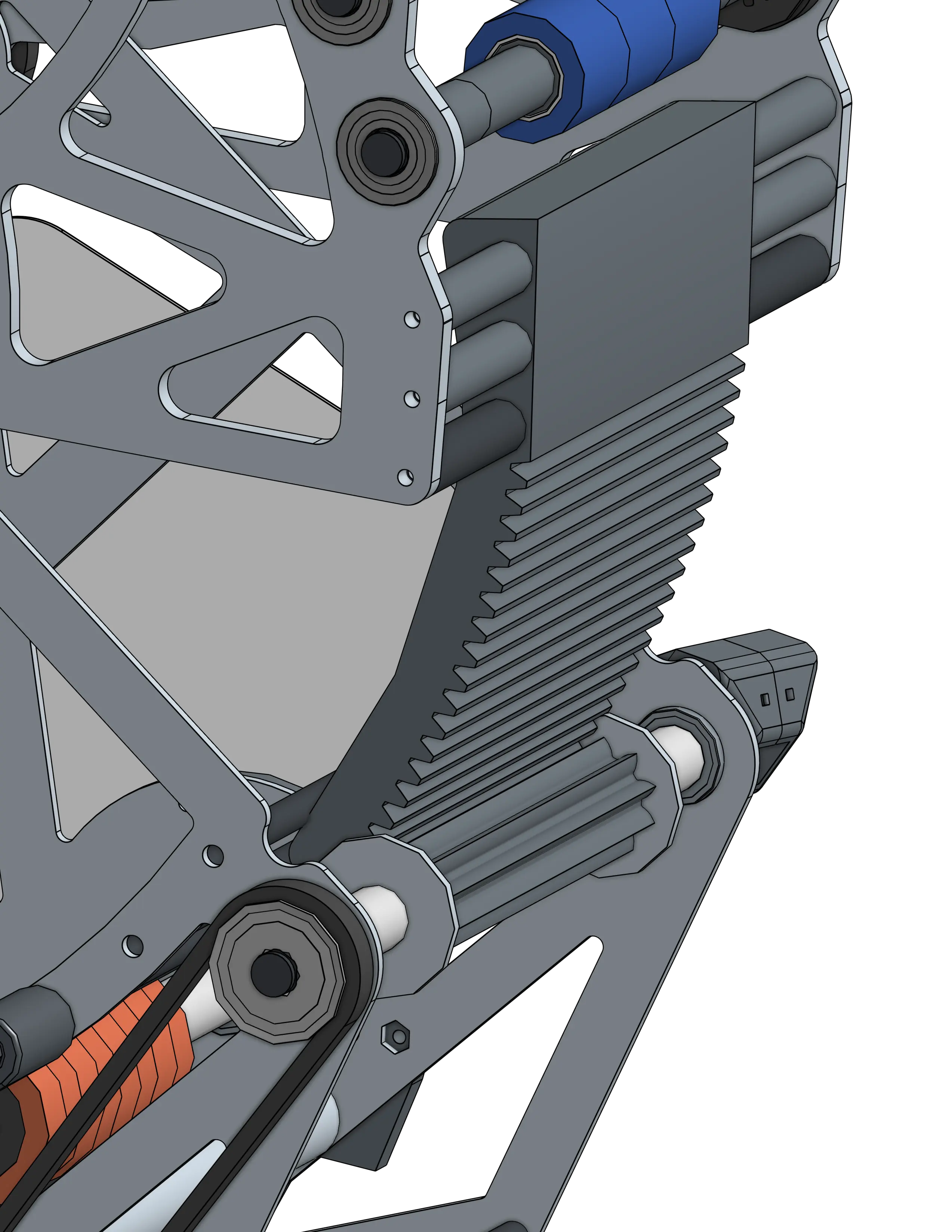 | Hooded fırlatıcı flywheel'leri genellikle TTB Urethane Tekerlekleri veya Stealth Tekerlekleri kullanır. Flywheel'lerinizin atış boyunca sabit bir hız tutması için yeterli kütleye sahip olduklarından emin olmak önemlidir, böylece tutarlı atışlar sağlarsınız. Flywheel'ınızın kütlesini artırmak, onun atalet momentini artıracaktır, bu da onun tutarlılığını artıracaktır. Aynı anda birden fazla parçayı tutup fırlatabildiğiniz oyunlar, özellikle Rapid React ve Infinite Recharge, özellikle kütleli flywheel'leri gerektirir. 1678 fırlatıcısı 2022'de kütlesi için iki SDS flywheel kullandı. | ![]() |