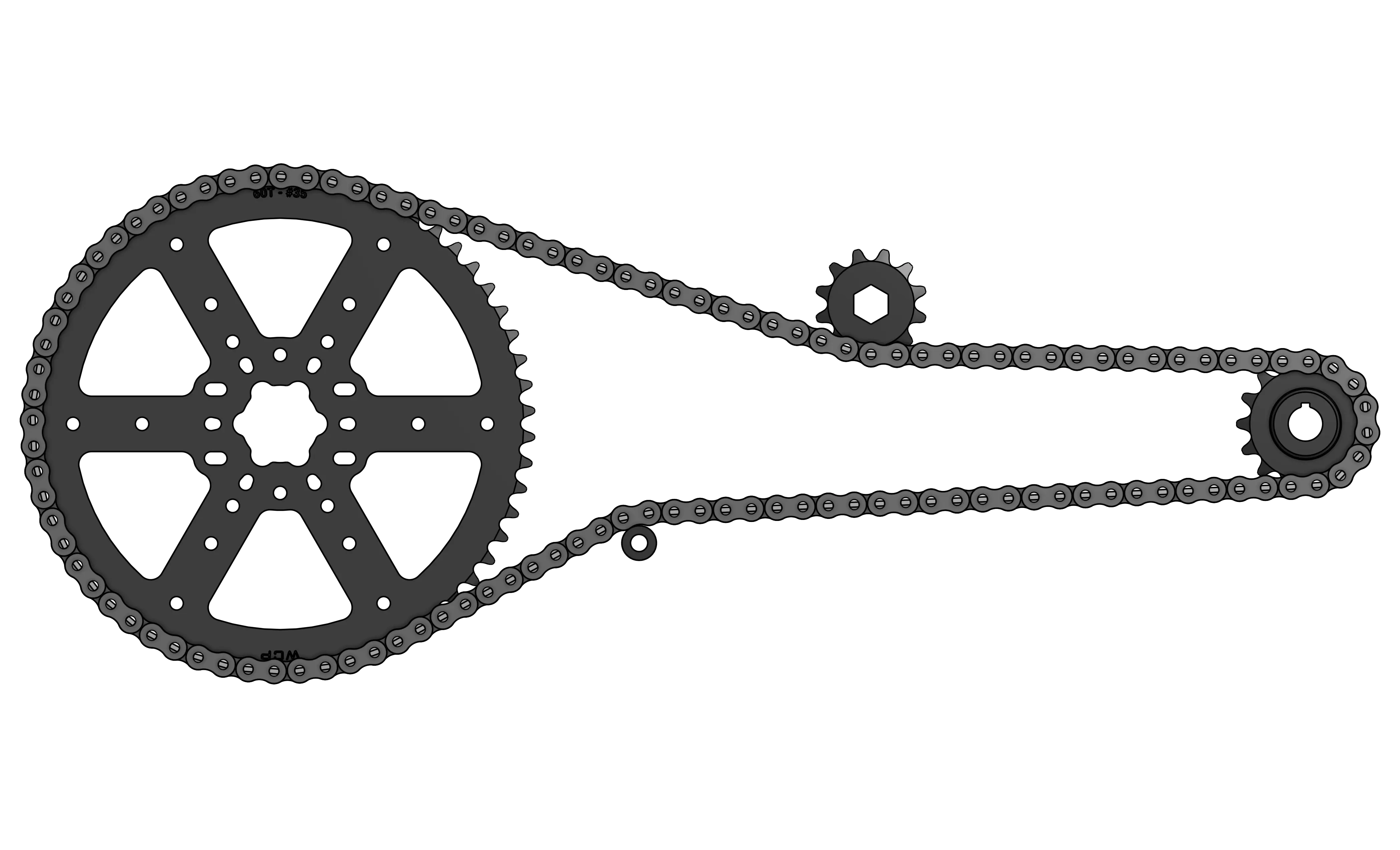 - Highly parametric - pulley/sprocket tooth count is automatically calculated from sketch pitch diameter.