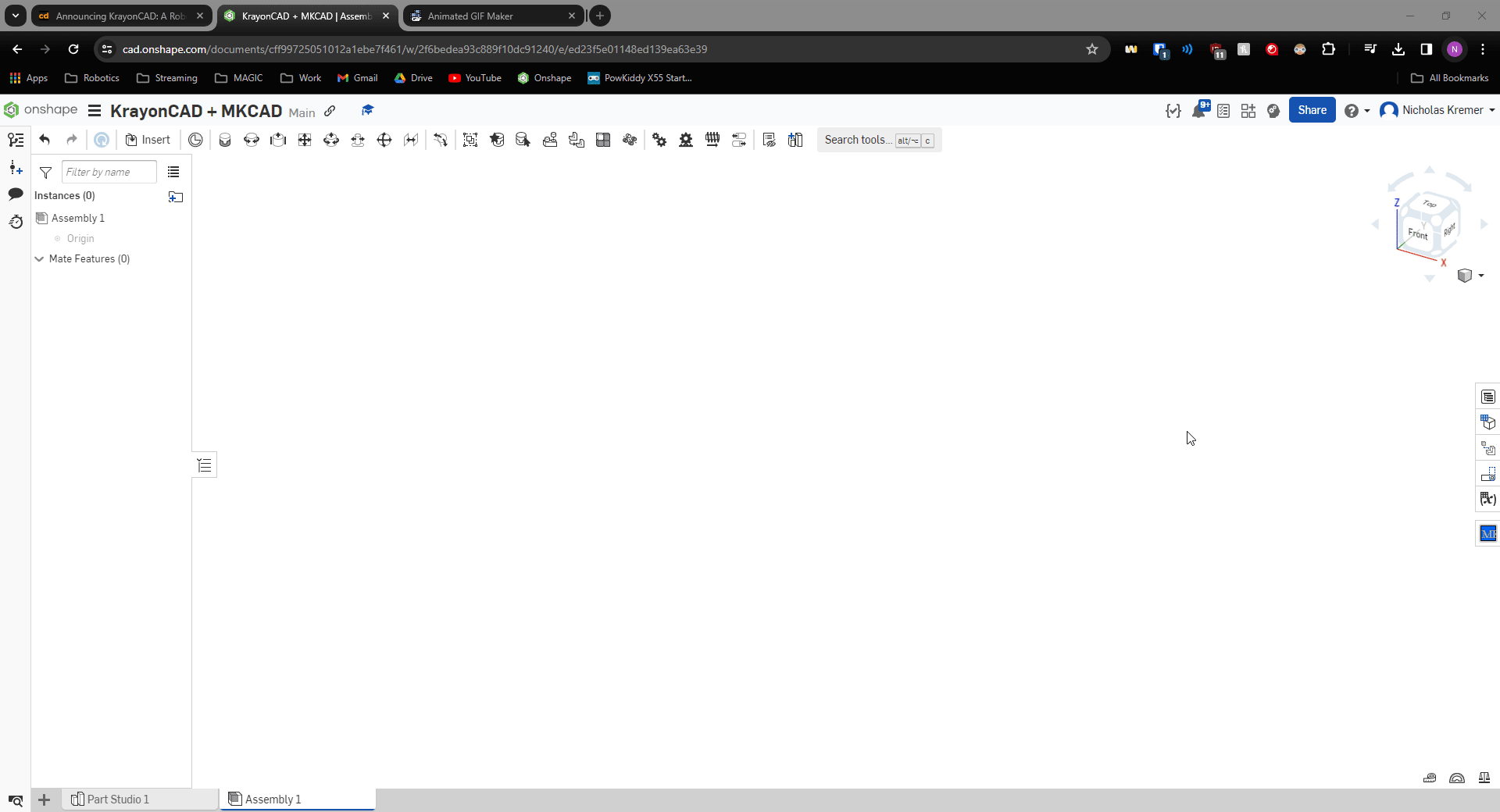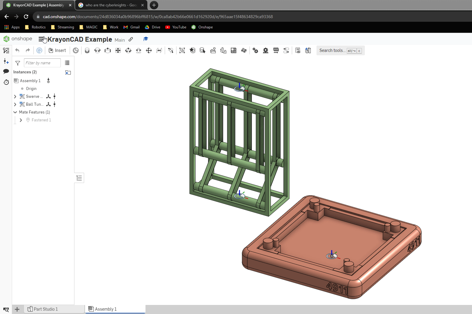 Ekleyin: Herhangi bir Onshape assembly'sinden, FRCDesignApp'ı kullanarak bir KrayonCAD Assembly ekleyin. Eklemeden önce Assembly'yi yapılandırabilirsiniz.